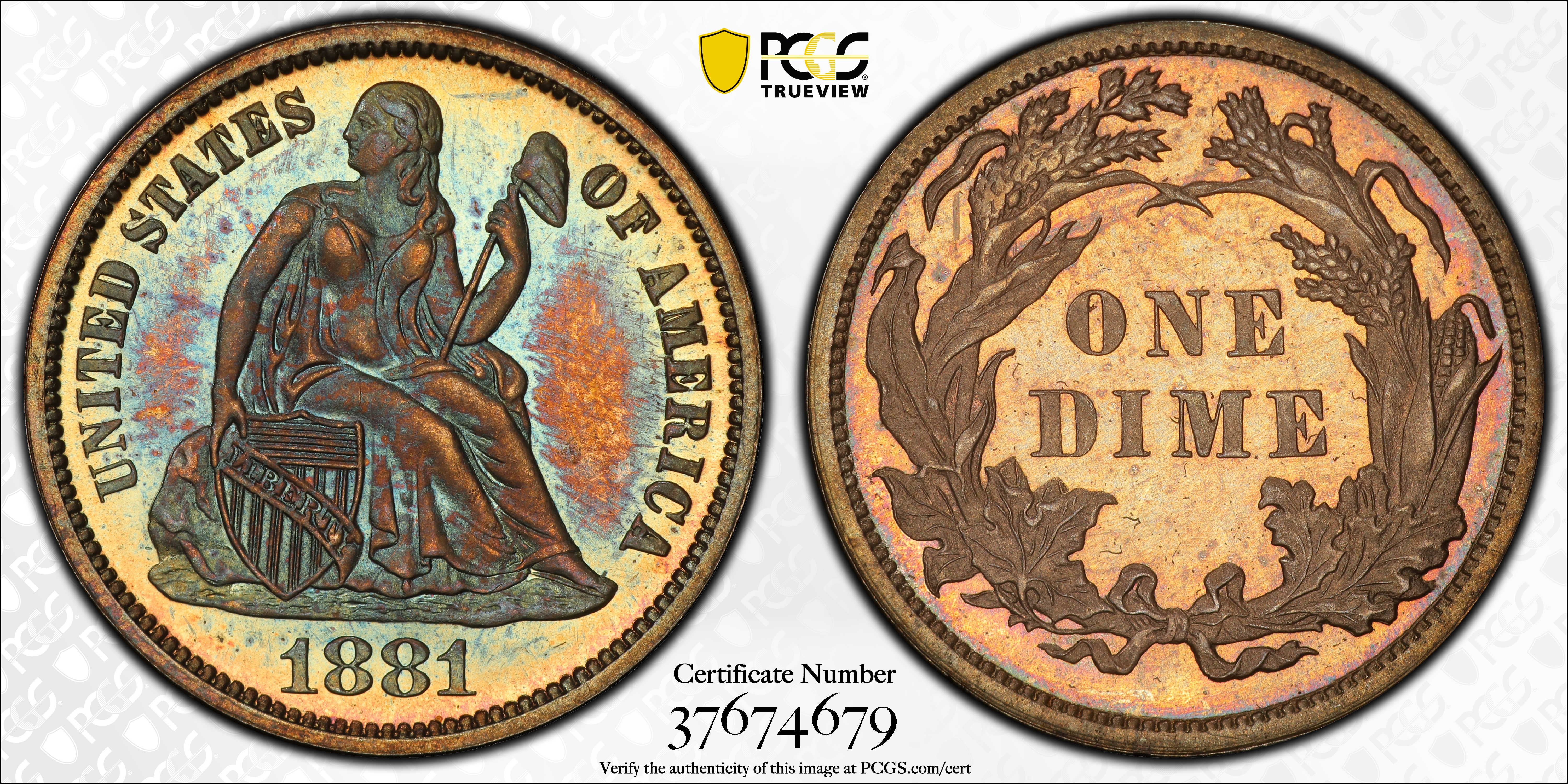 1881 10C PR67 Certification #37674679, PCGS #4778