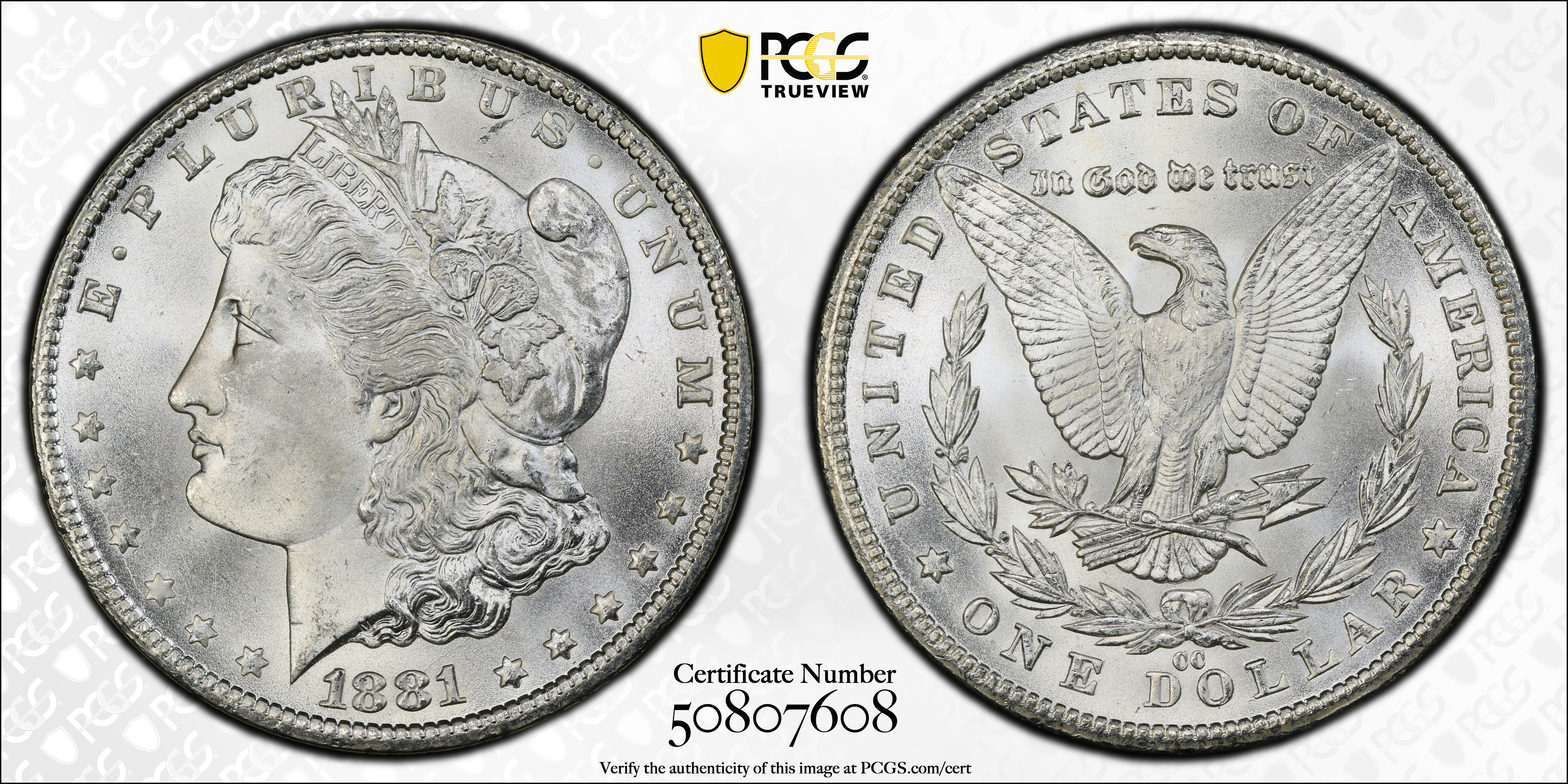 1881-CC $1 MS67 Certification #50807608, PCGS #7126