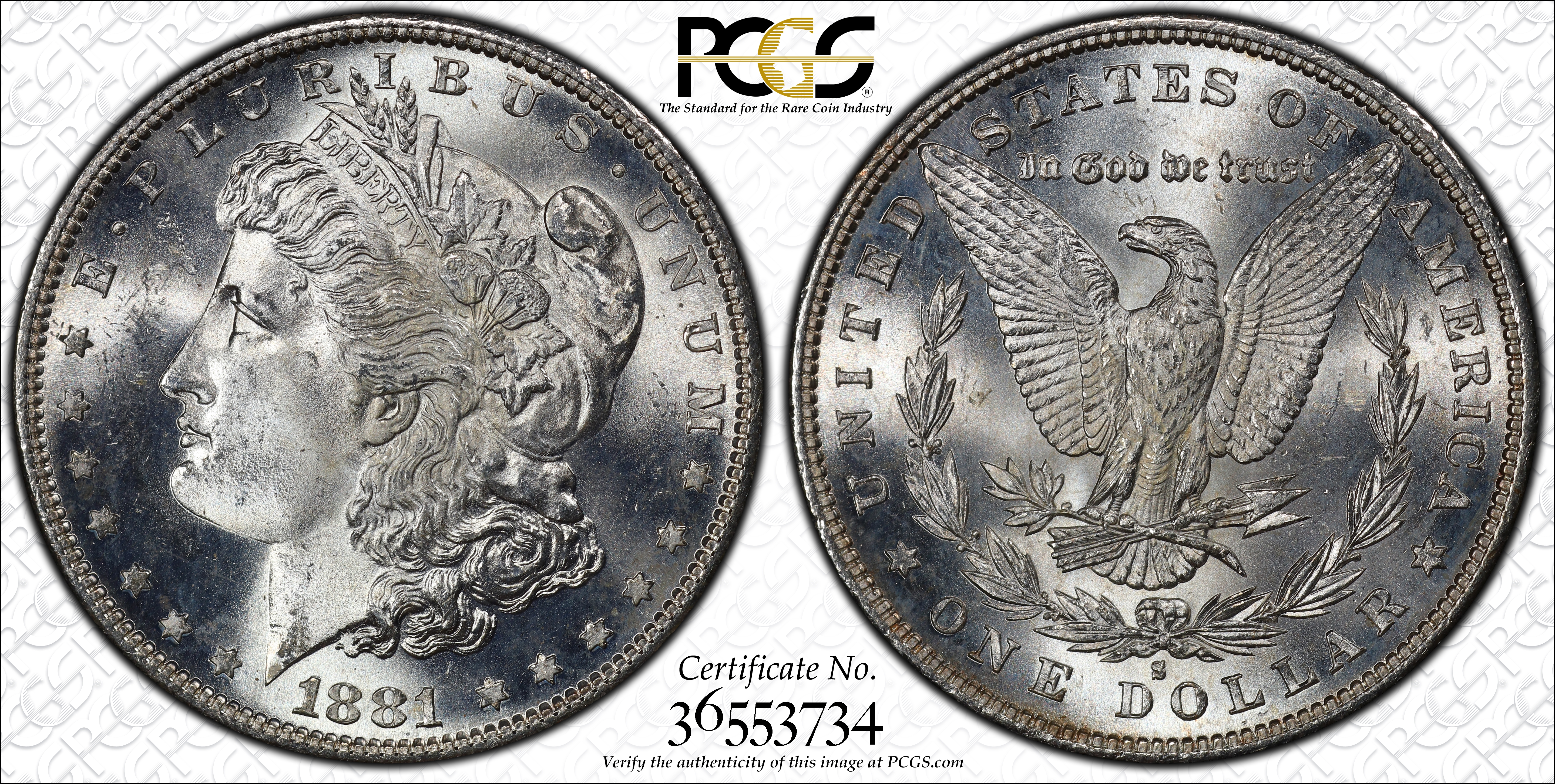 1881-S $1 MS65 Certification #36553734, PCGS #7130