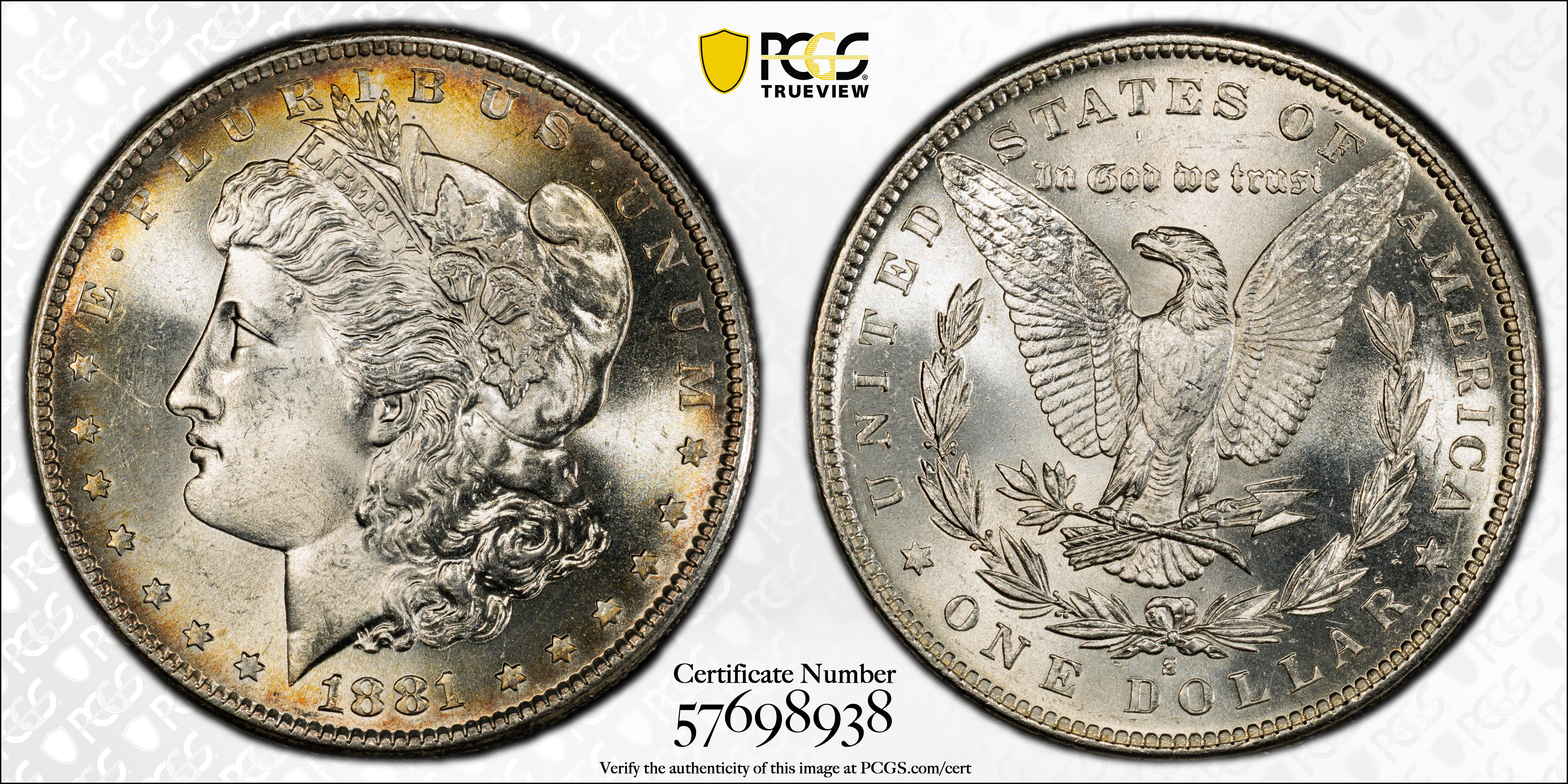 1881-S $1 MS65 Certification #57698938, PCGS #7130