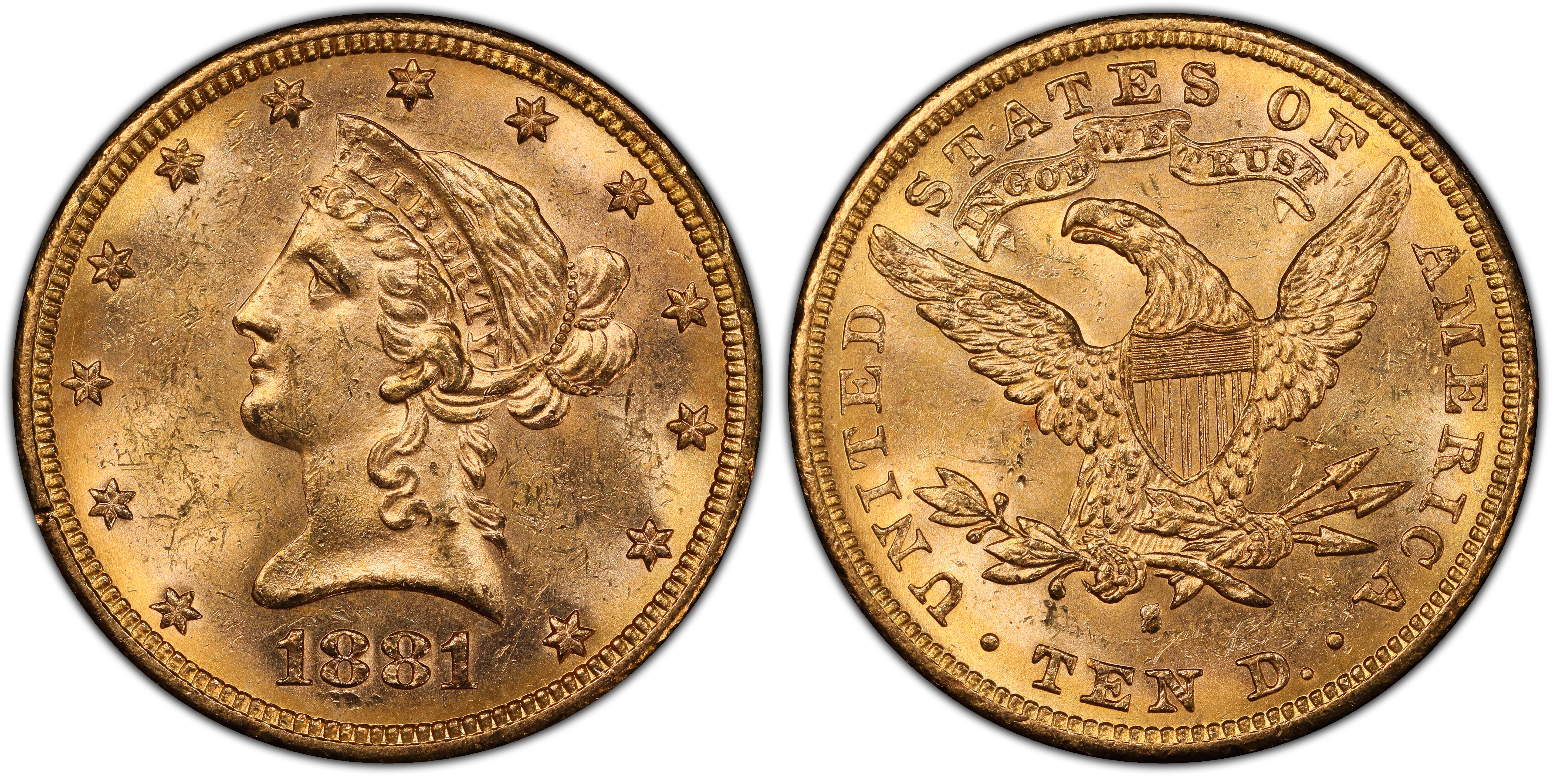 1881-S $10 MS63+ Certification #45171909, PCGS #8694