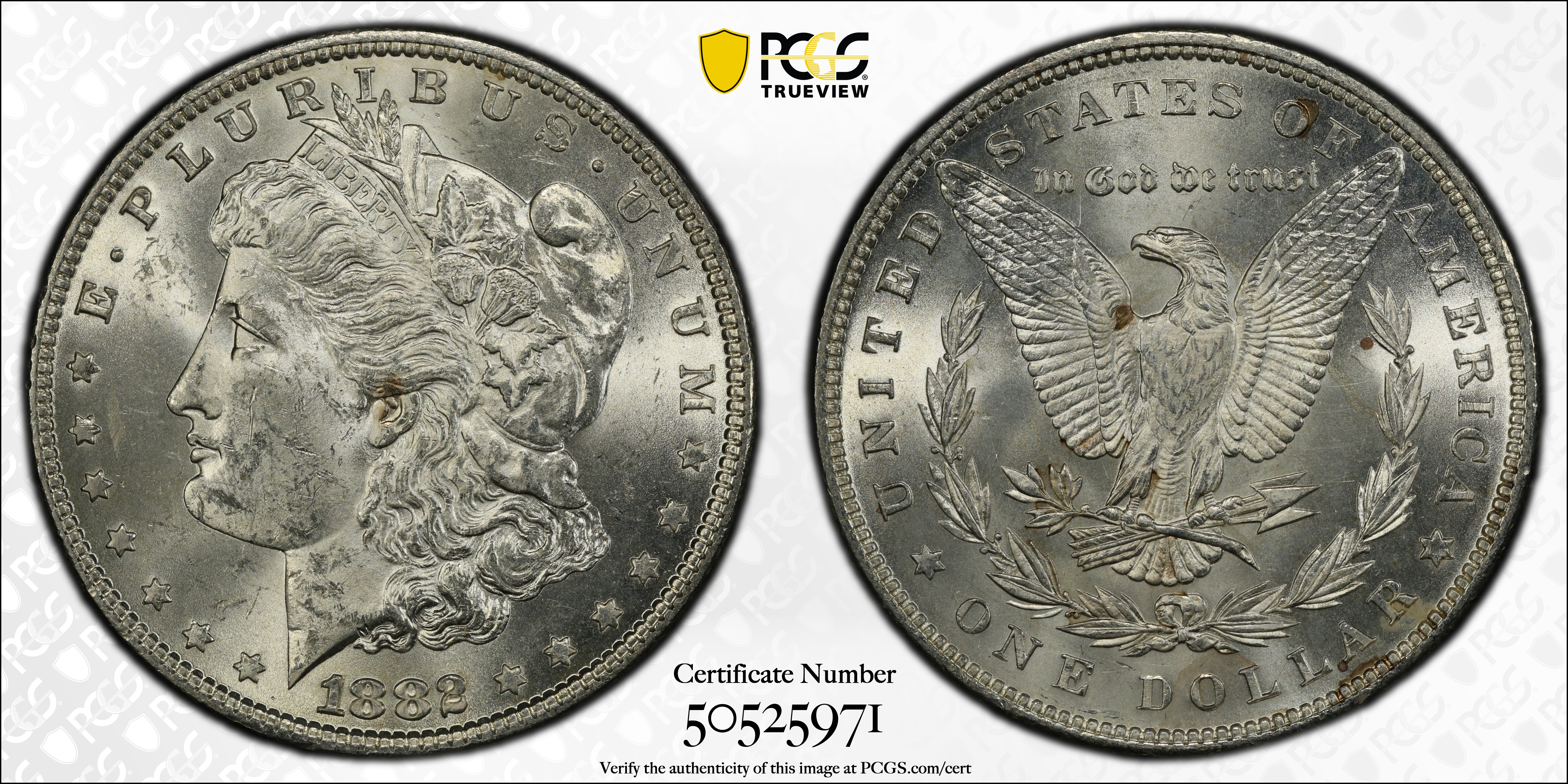 1882 $1 MS62 Certification #50525971, PCGS #7132