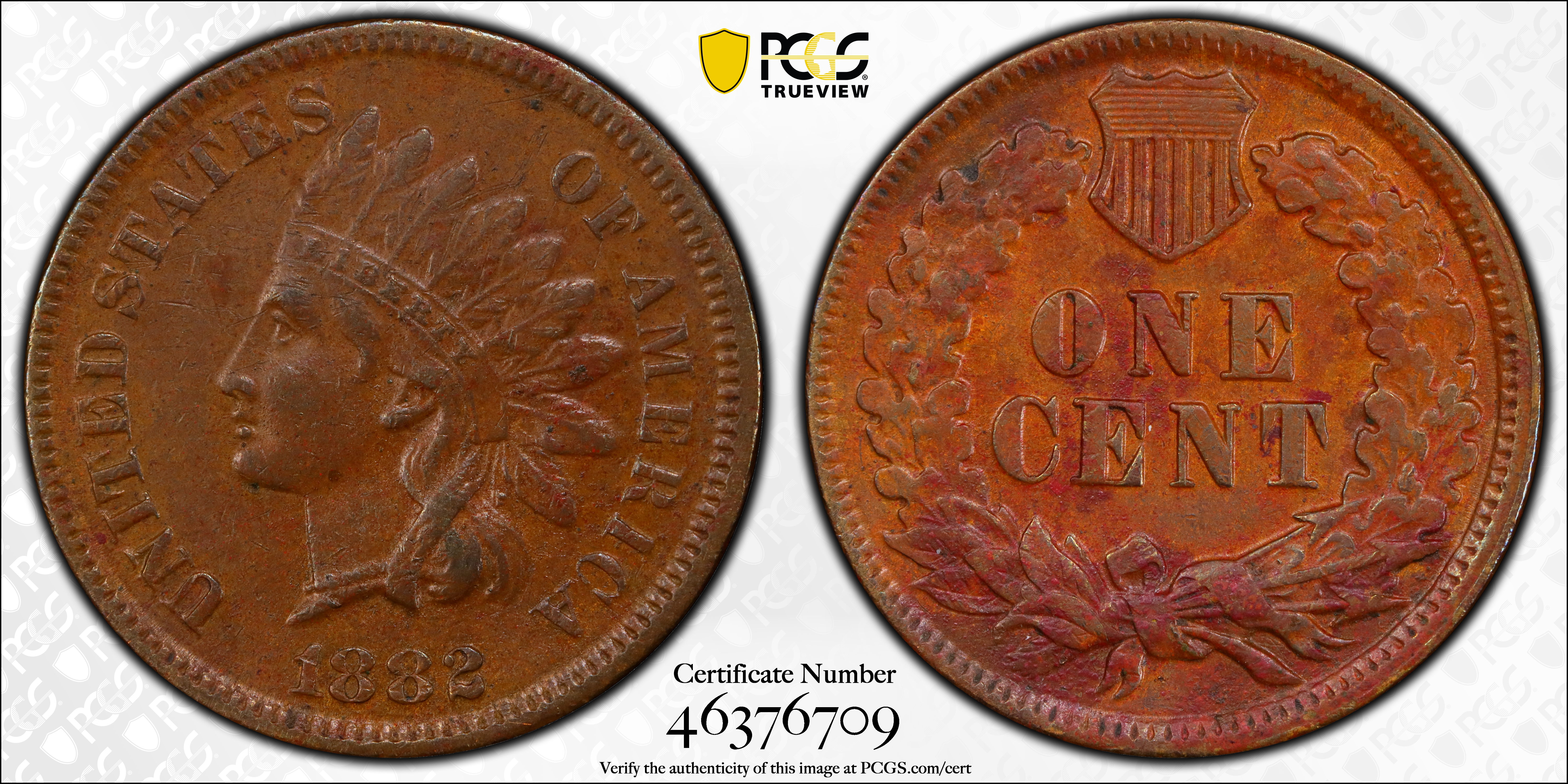 The 1882 Indian Head Cent is a very common coin in all grades, up to (and including) MS65. MS66 examples are scarce, and the finest examples certified by PCGS are a pair of MS67s. The typical 1882 Cent is well-struck, but some examples display surface granularity that develops as the dies wear. Luster is good and the original color appears to be full red or an orange-red.