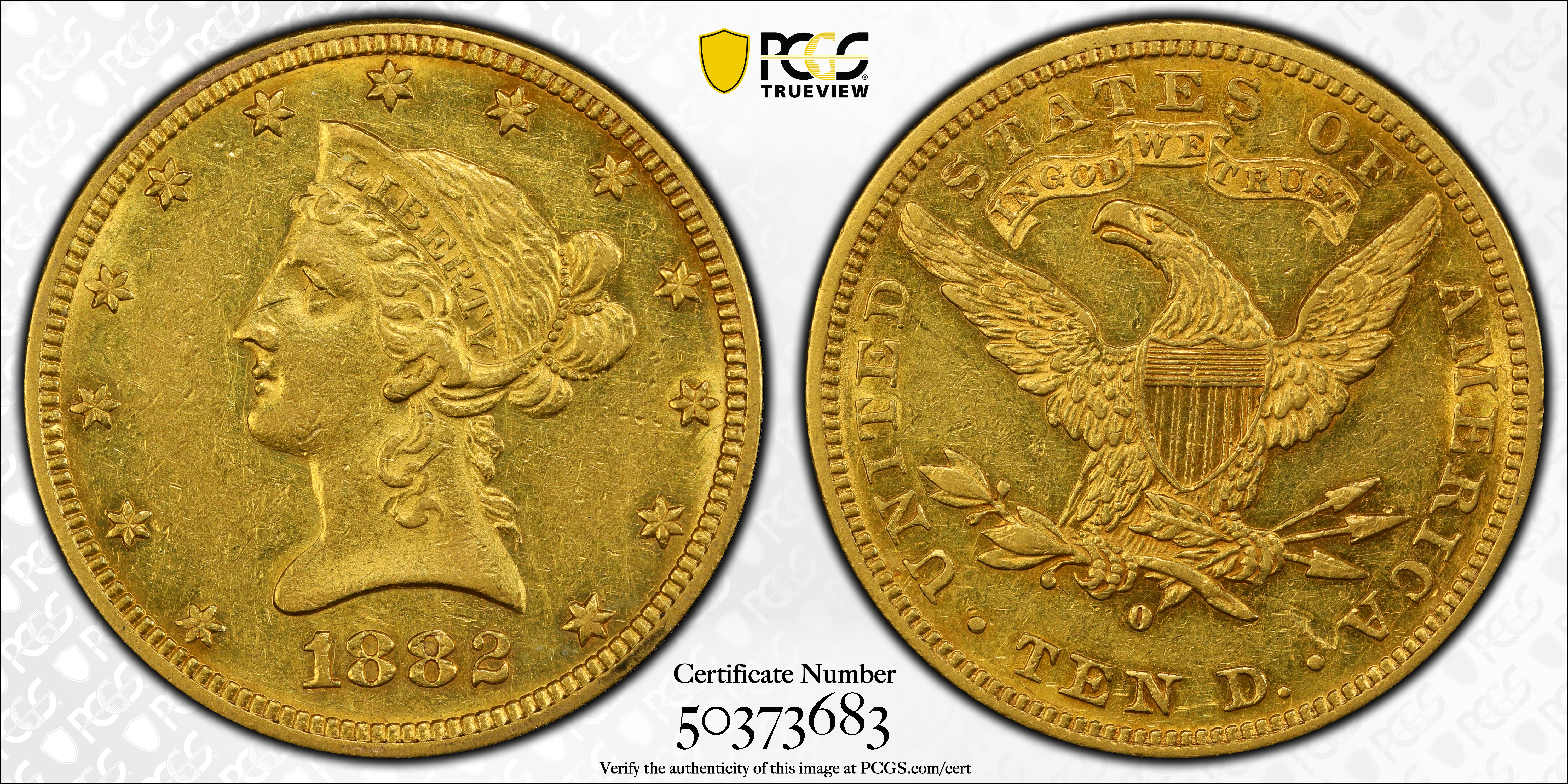 1882-O $10 AU53 Certification #50373683, PCGS #8697