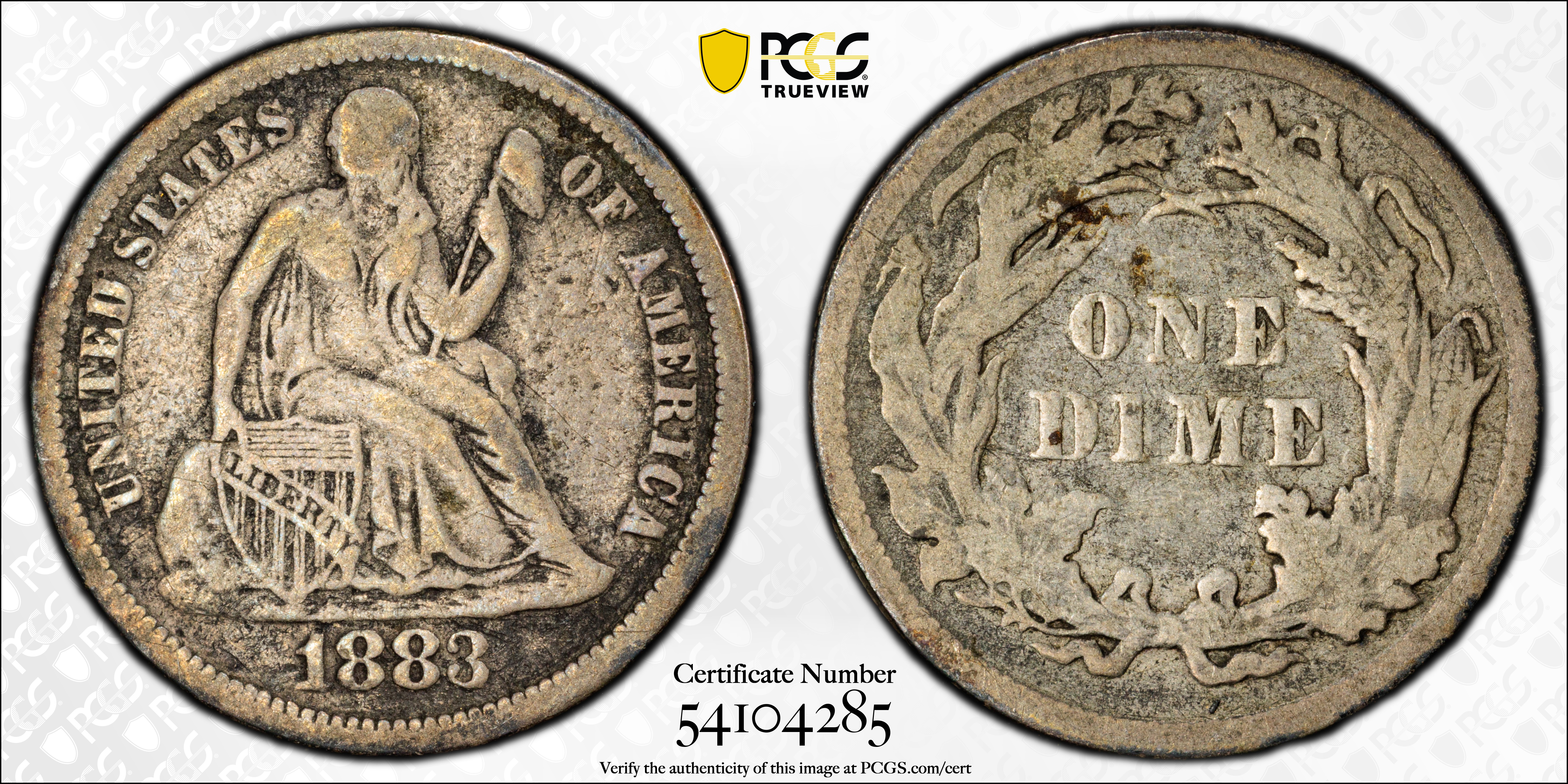 1883 10C F15 Certification #54104285, PCGS #4691