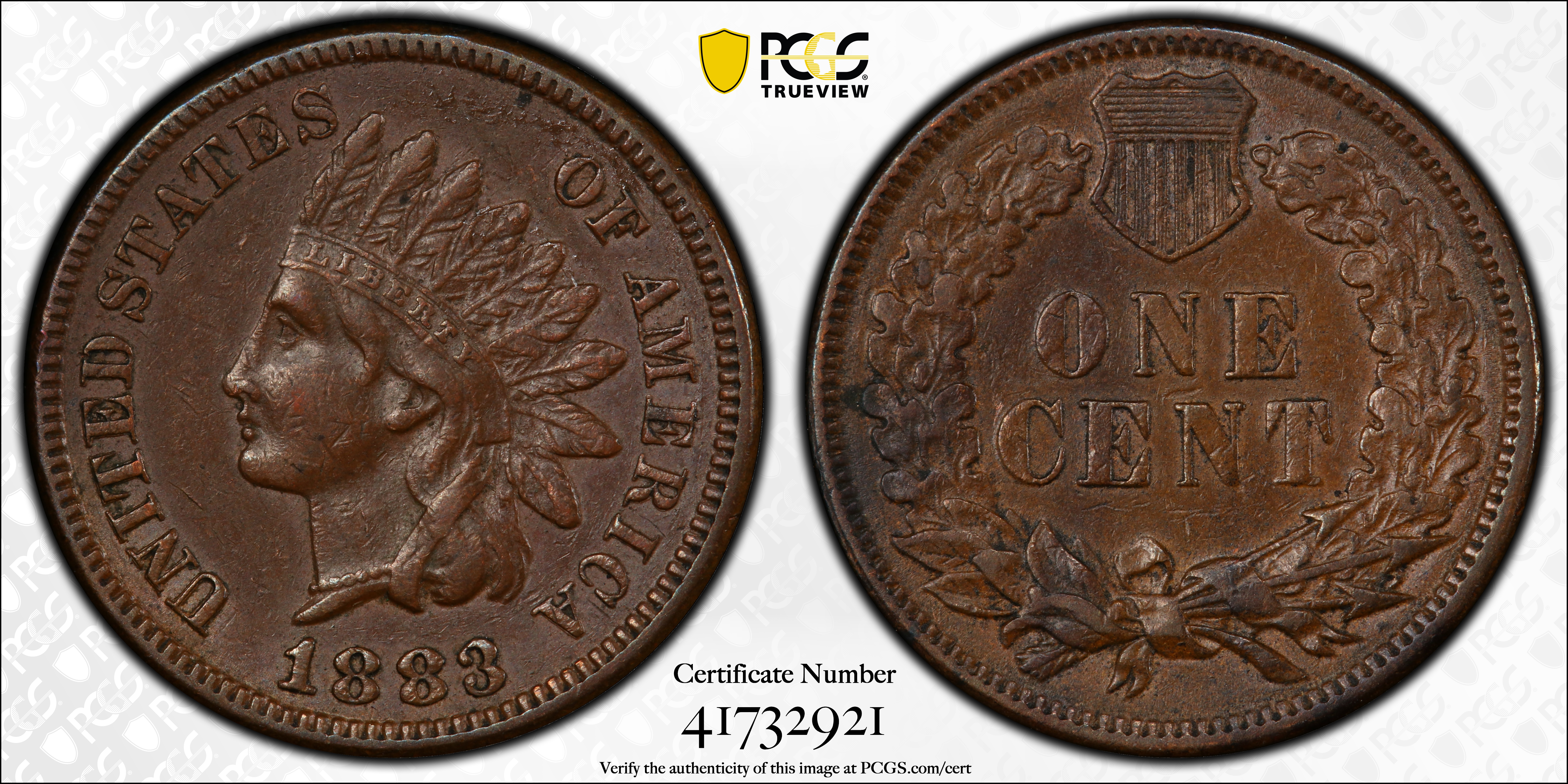 1883 1C, BN AU50BN Certification #41732921, PCGS #2145