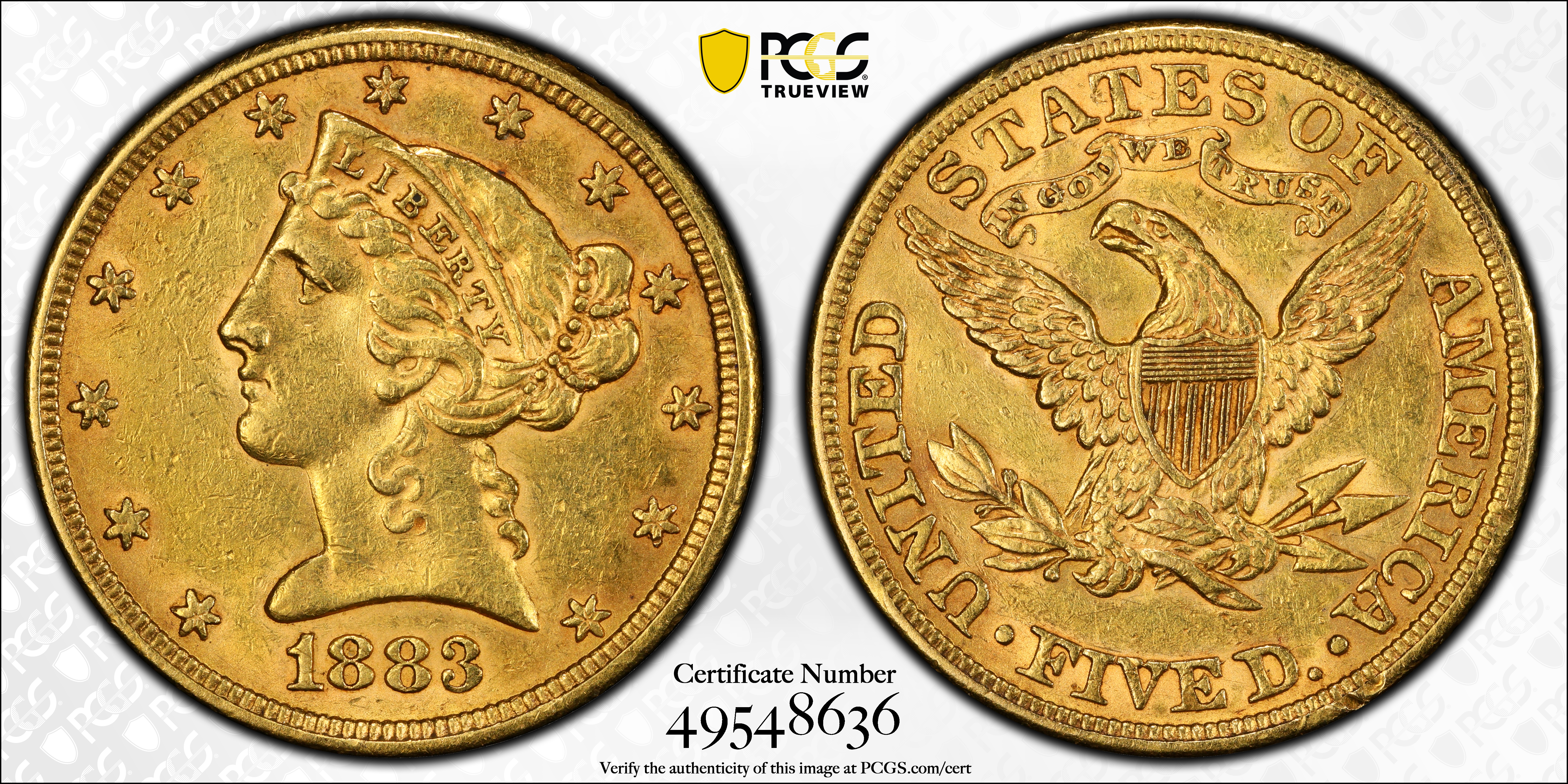 1883 $5 AU53 Certification #49548636, PCGS #8361