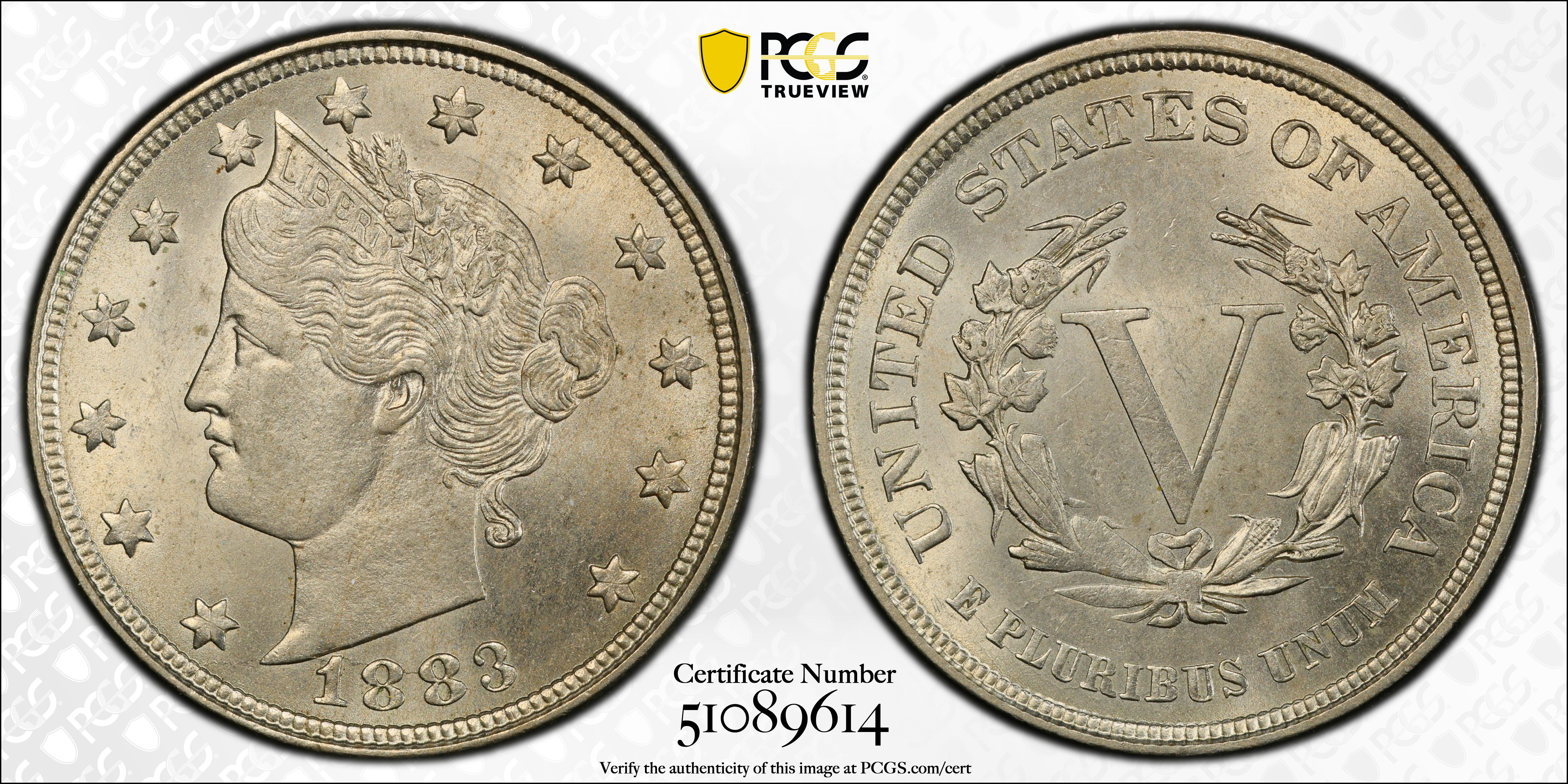 1883 5C No CENTS MS63 Certification #51089614, PCGS #3841