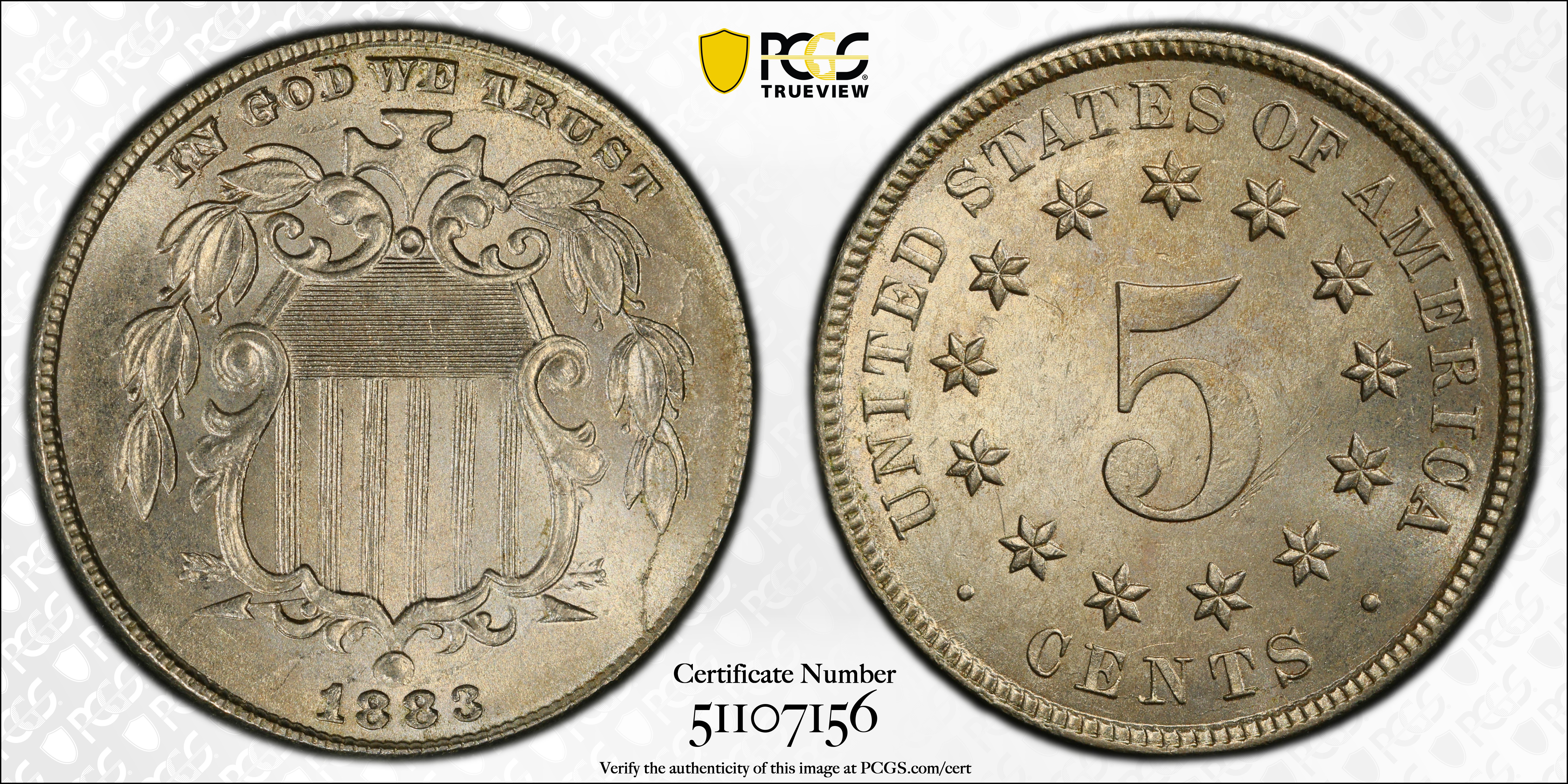 1883 5C Shield MS63 Certification #51107156, PCGS #3813