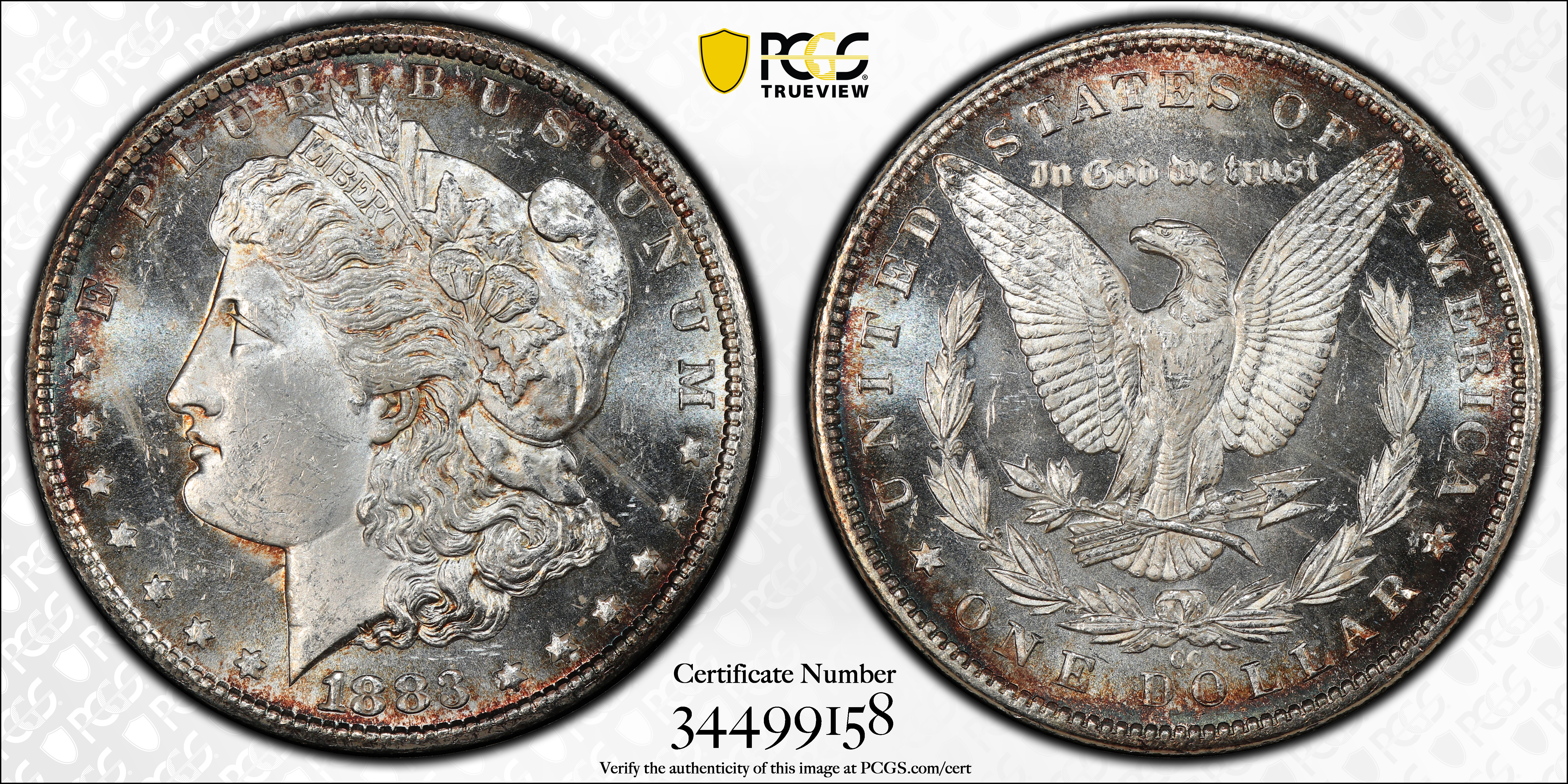 1883-CC $1 MS63 Certification #34499158, PCGS #7144