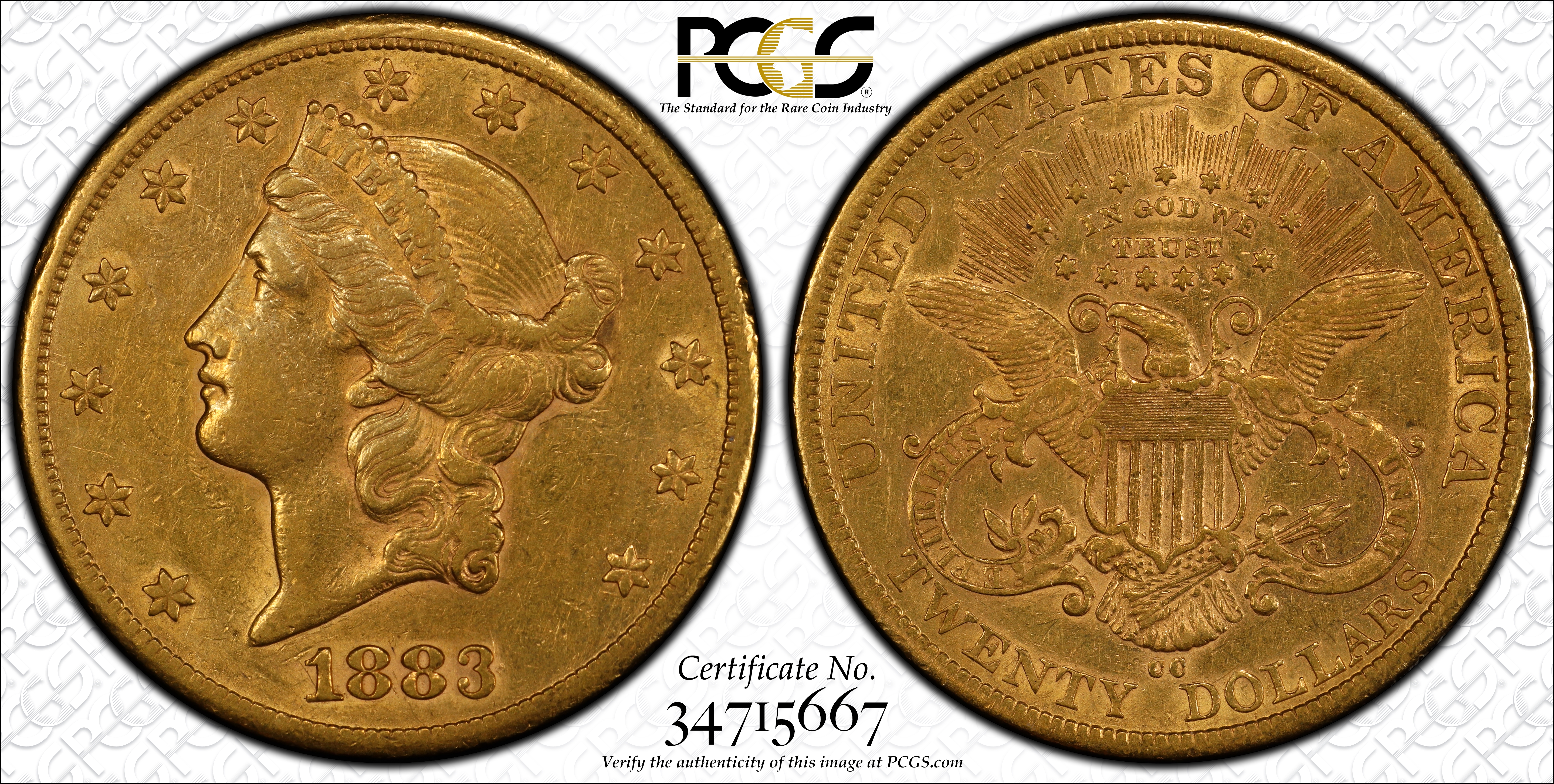 1883-CC $20 AU50 Certification #34715667, PCGS #8999
