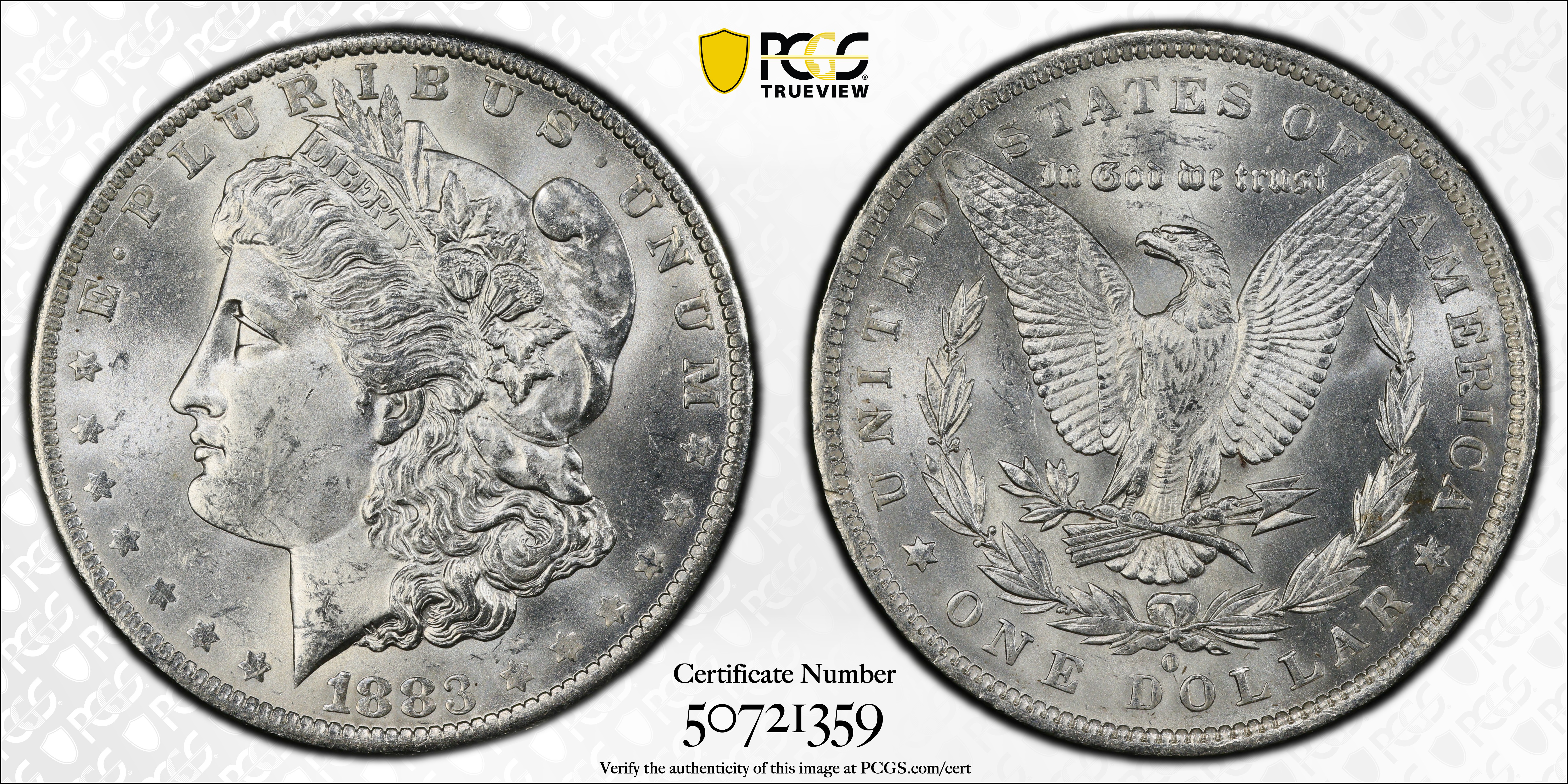 1883-O $1 MS63 Certification #50721359, PCGS #7146