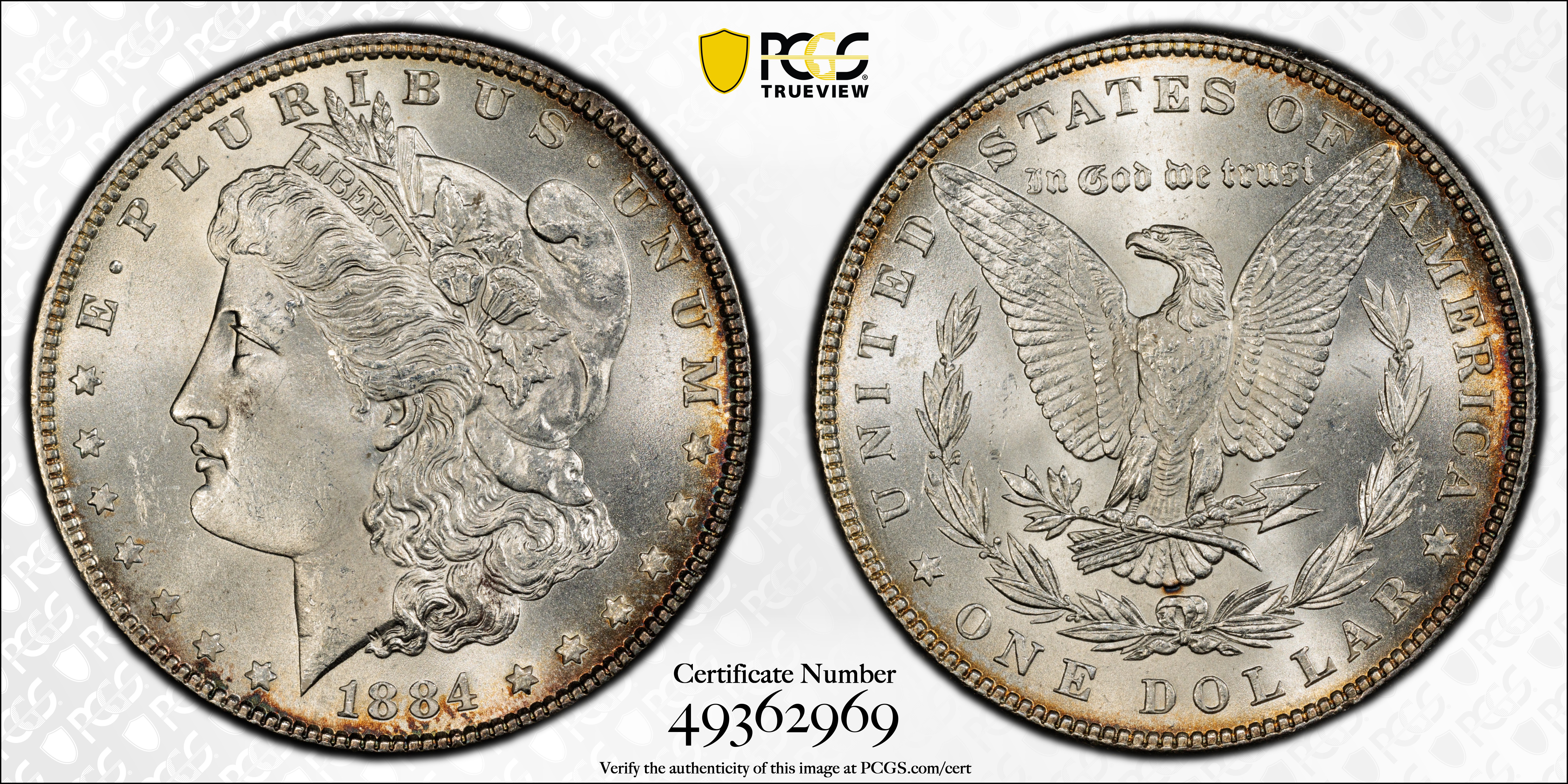 1884 $1 MS64+ Certification #49362969, PCGS #7150