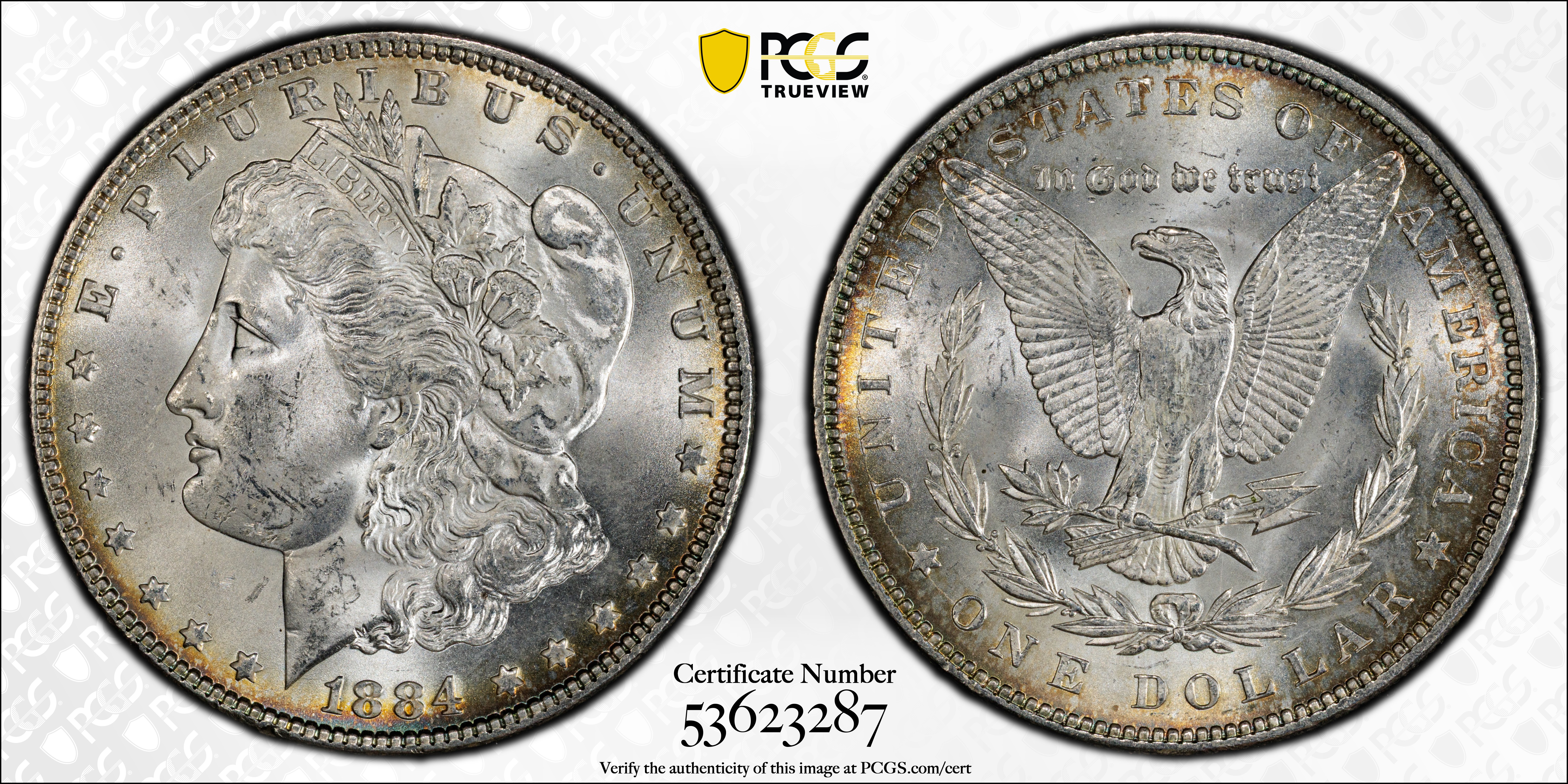 1884 $1 MS63 Certification #53623287, PCGS #7150