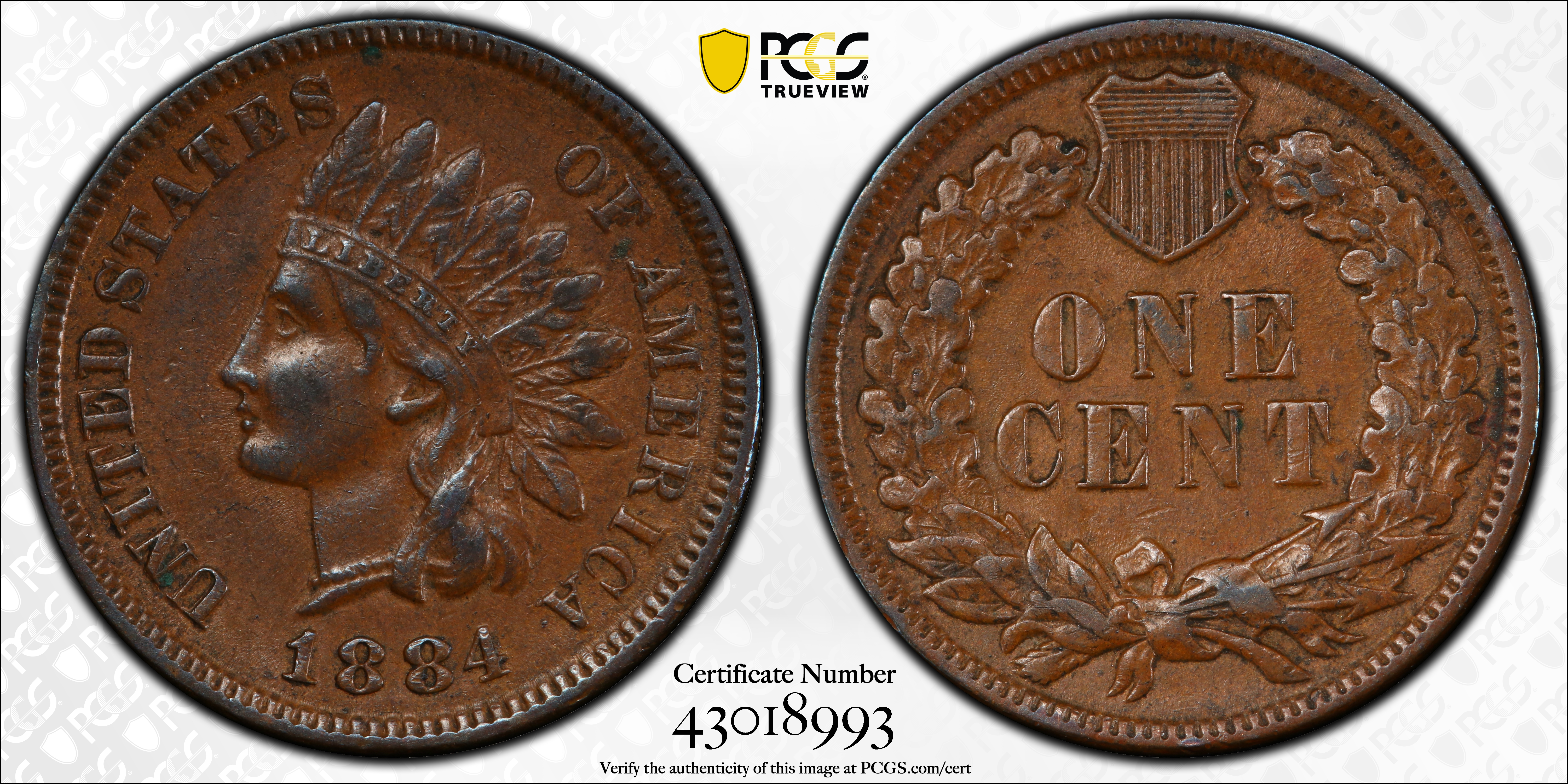1884 1C, BN AU50BN Certification #43018993, PCGS #2148