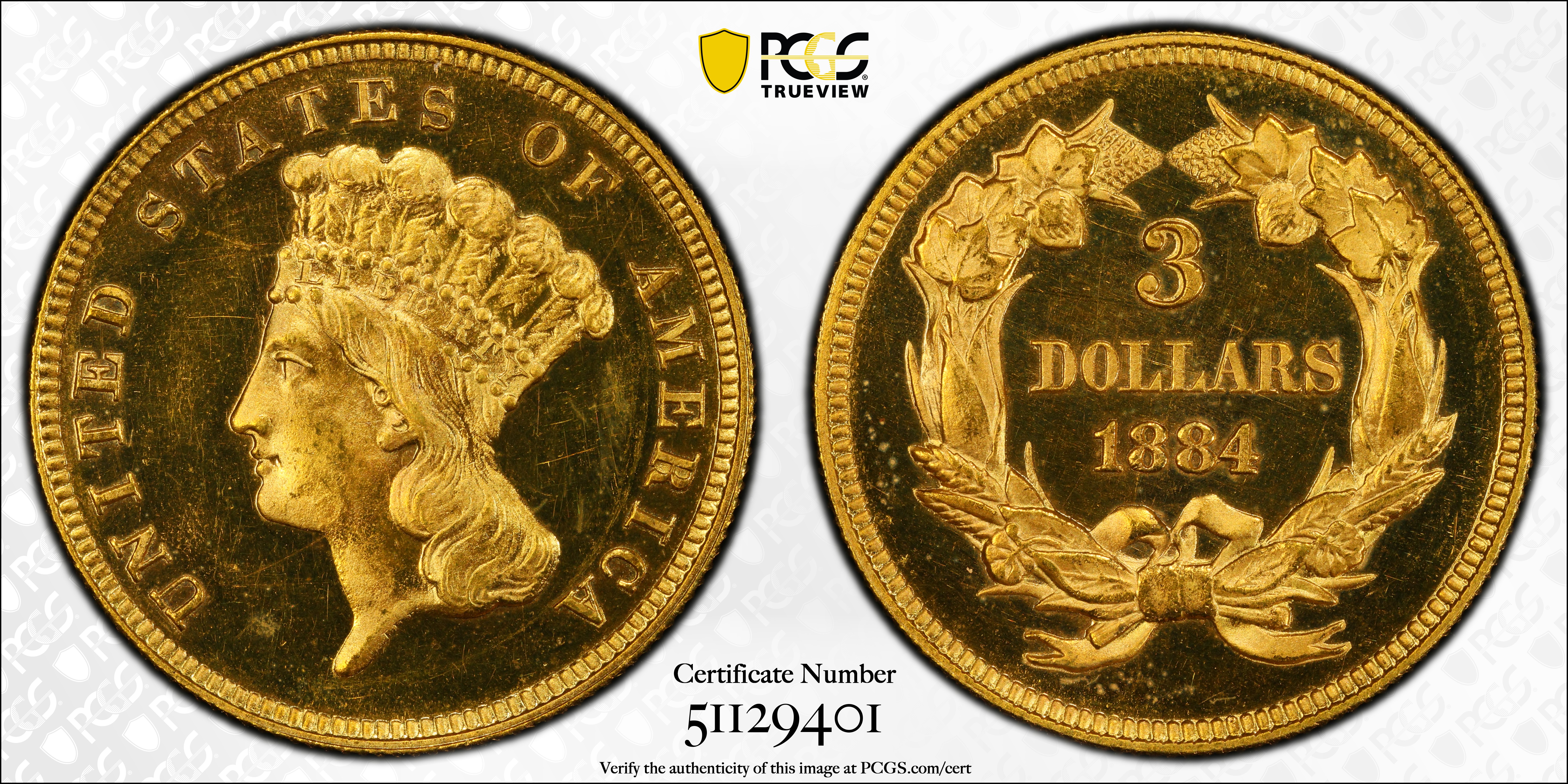 1884 $3, CAM PR64+ CAM Certification #51129401, PCGS #88048