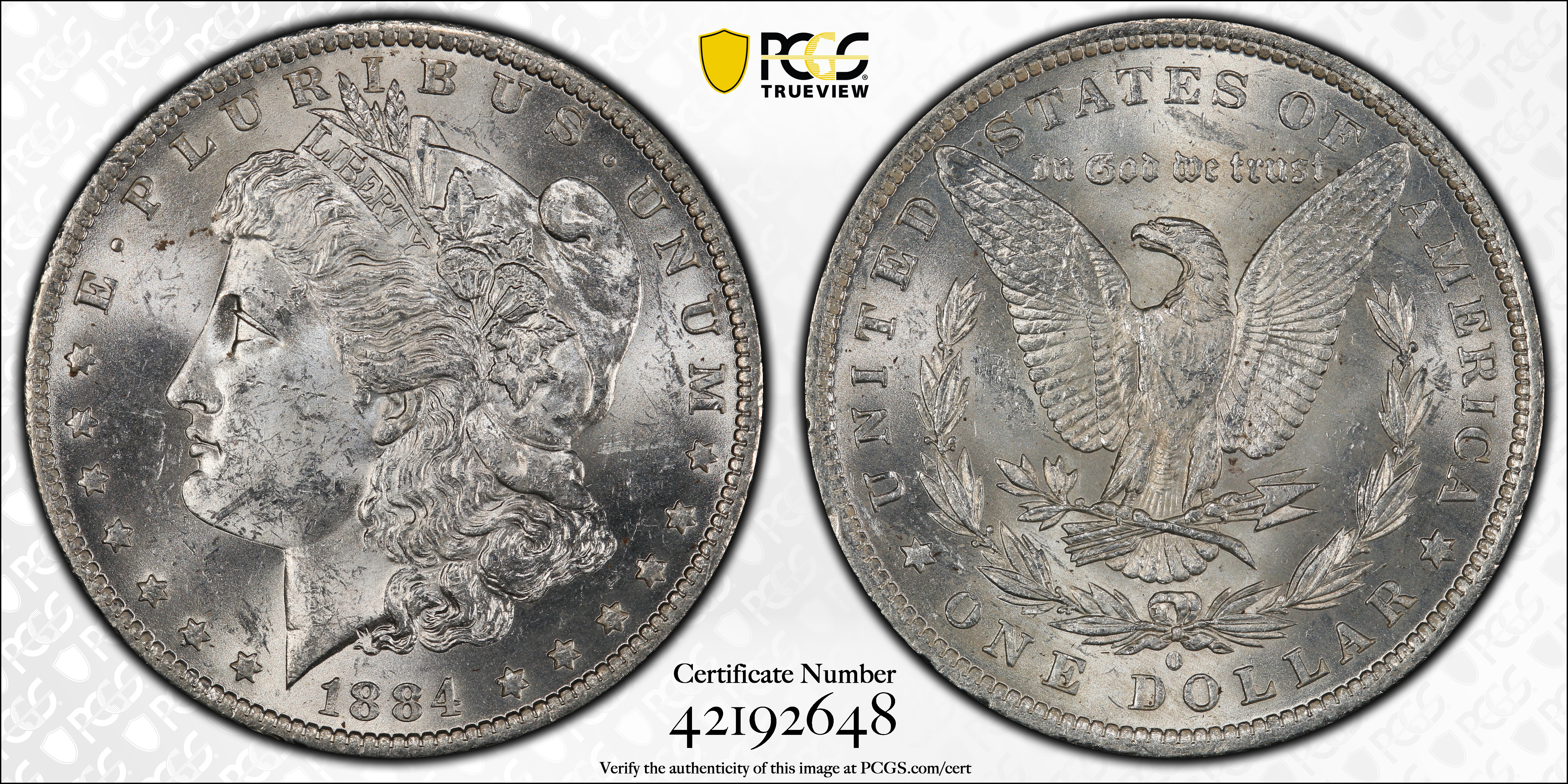 1884-O $1 MS62 Certification #42192648, PCGS #7154