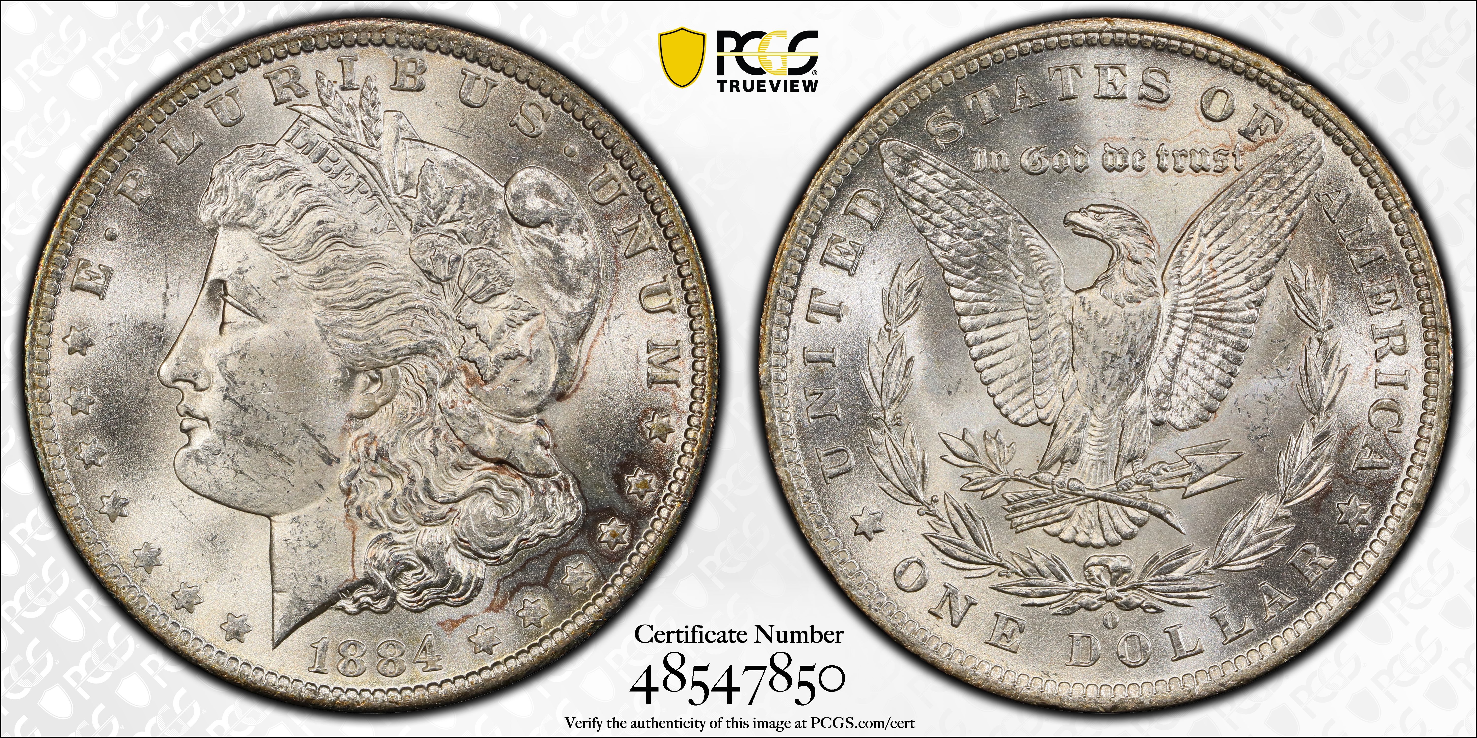 1884-O $1 MS63 Certification #48547850, PCGS #7154