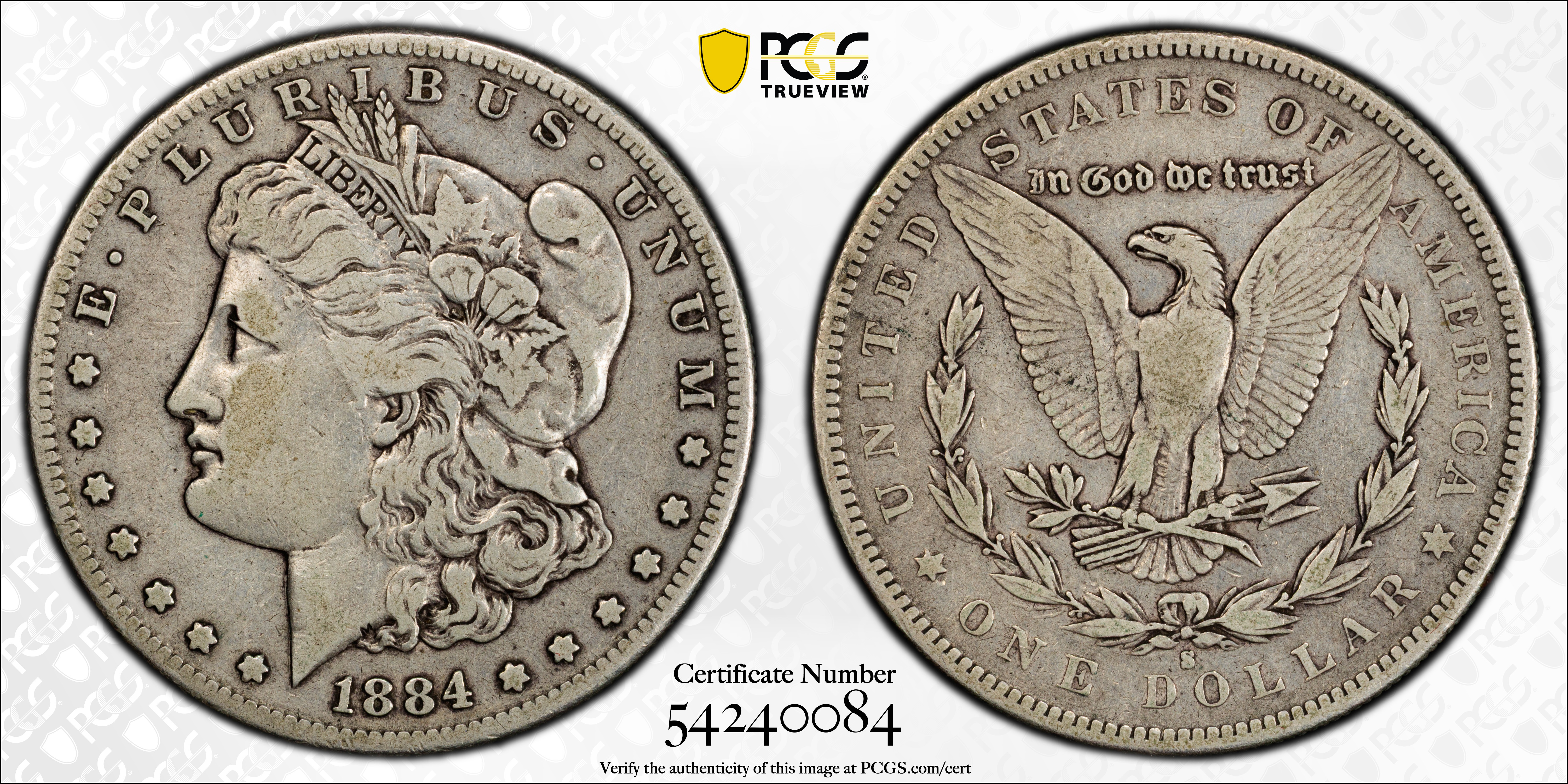 1884-S $1 VF25 Certification #54240084, PCGS #7156