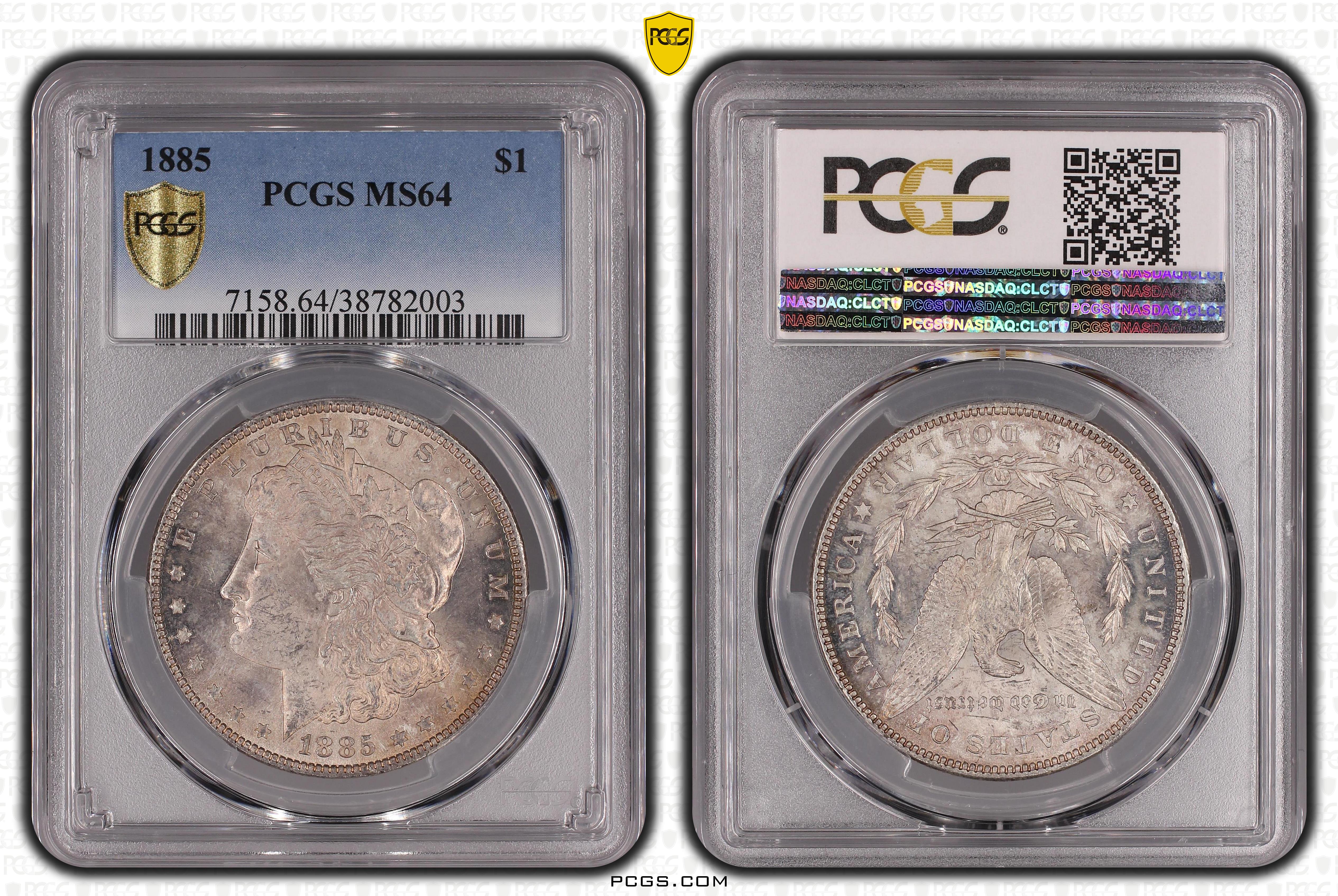 1885 $1 MS64 Certification #38782003, PCGS #7158