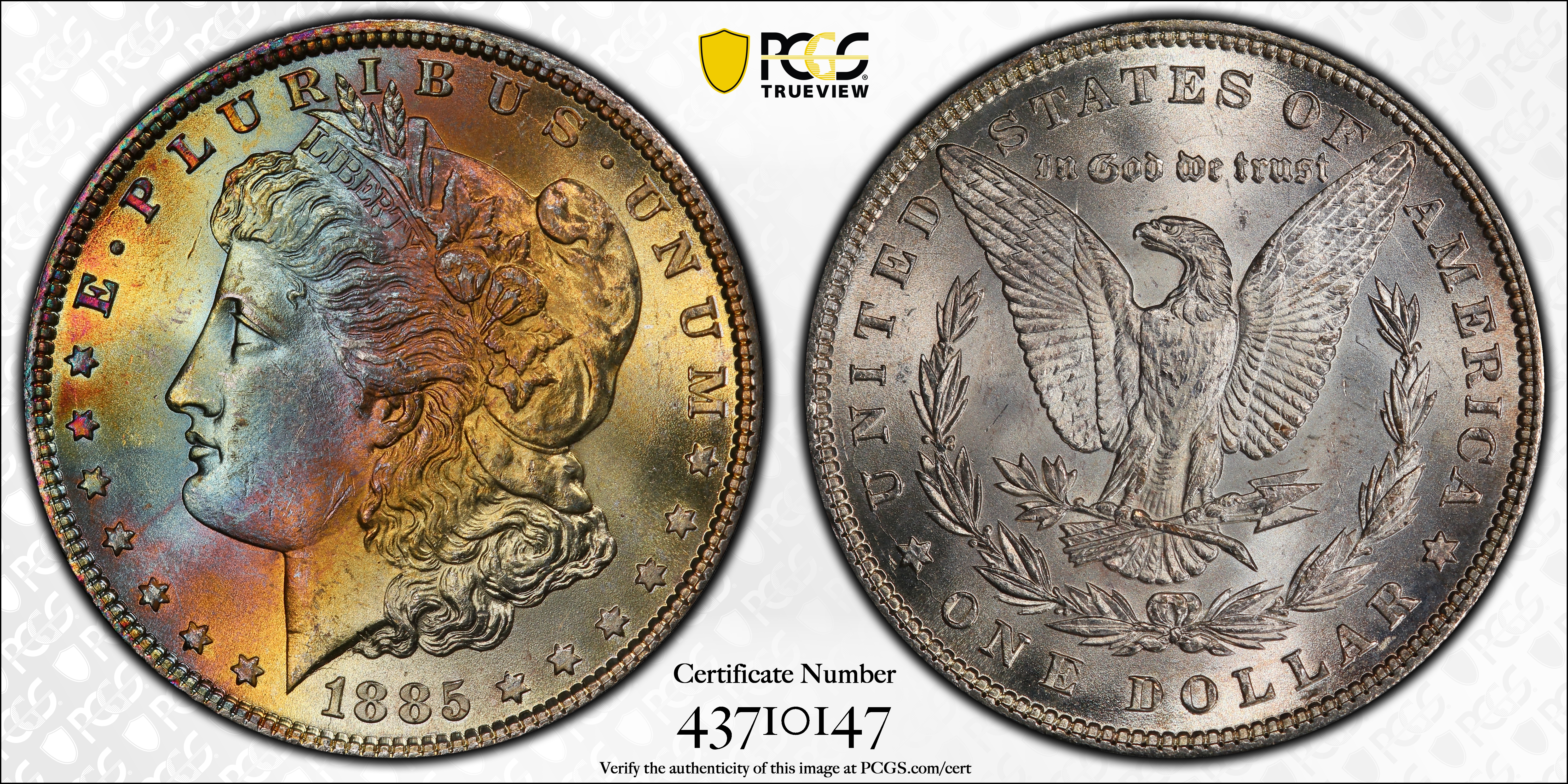 1885 $1 MS64 Certification #43710147, PCGS #7158