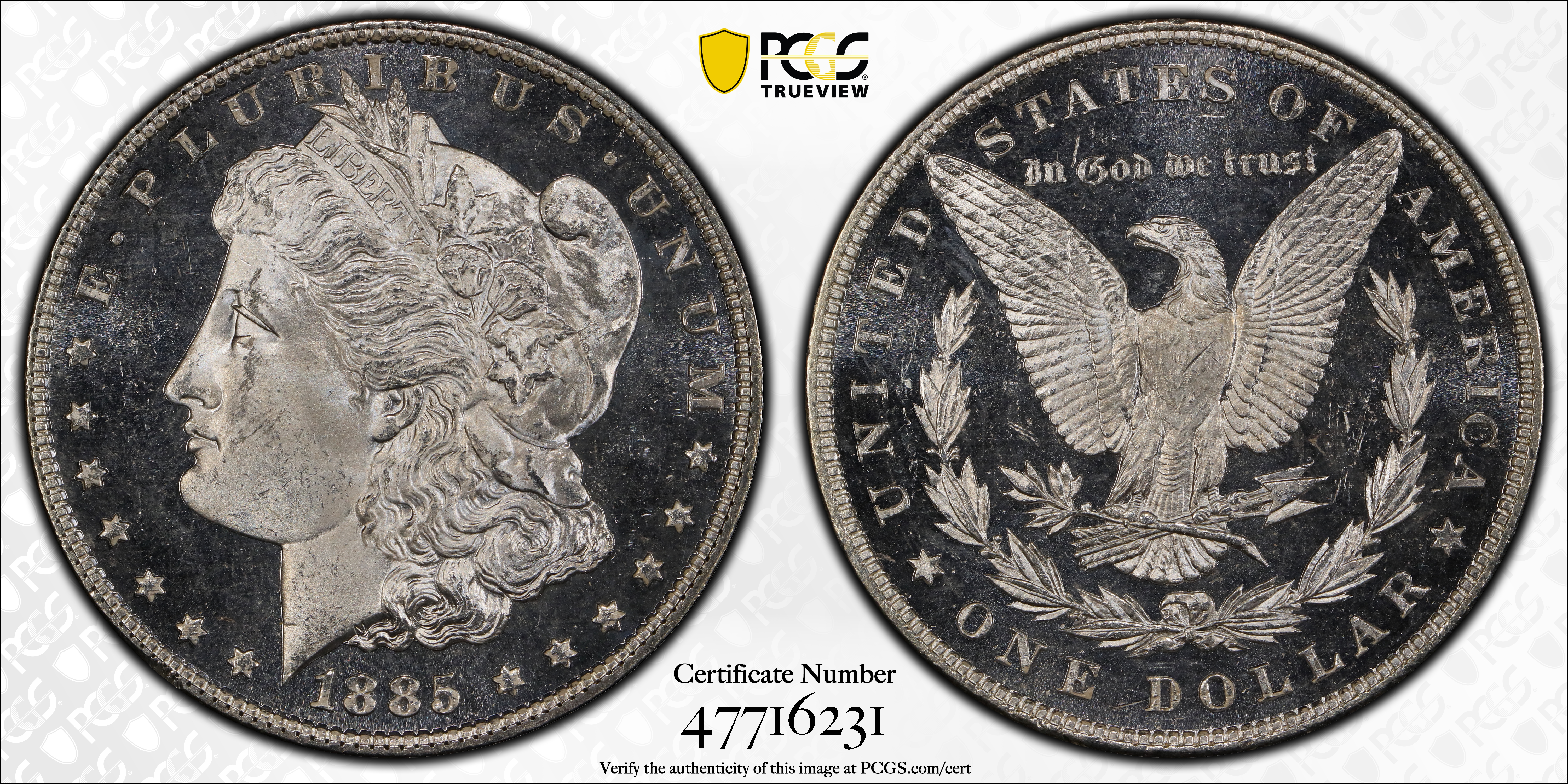 1885 $1, DMPL MS66+ DMPL Certification #47716231, PCGS #97159