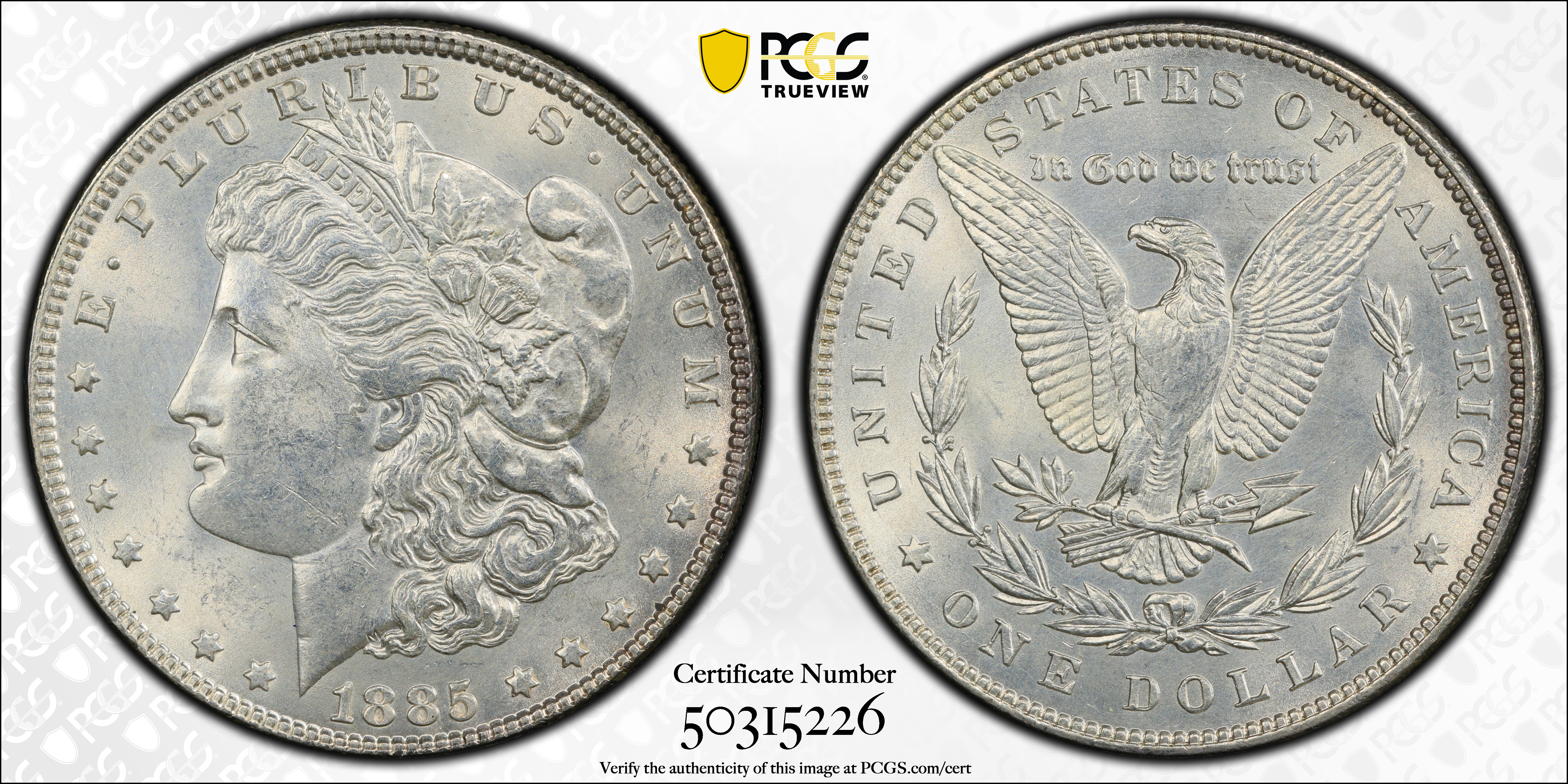 1885 $1 N1 Certification #50315226, PCGS #7158