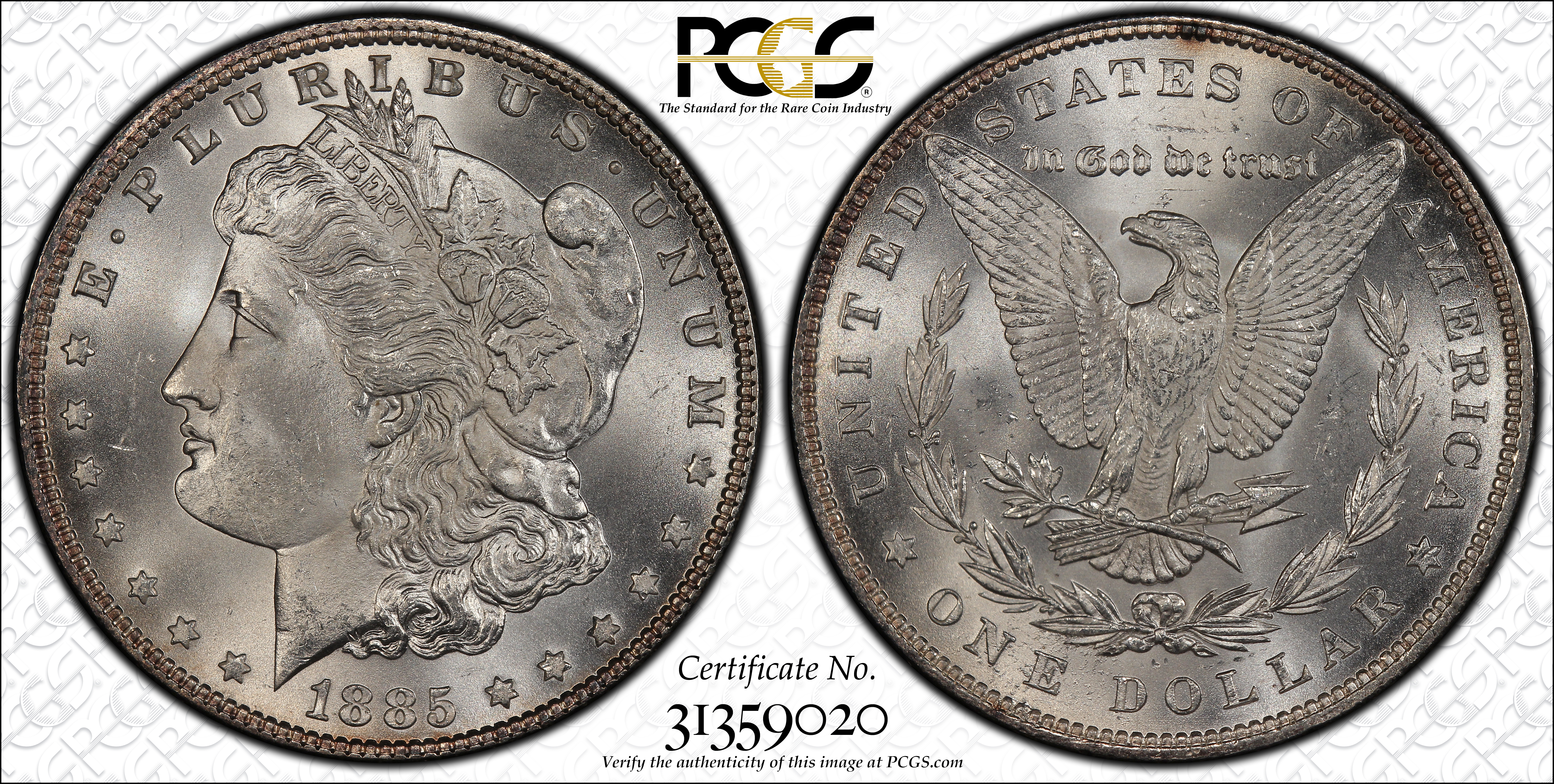 1885 $1 MS65 Certification #31359020, PCGS #7158