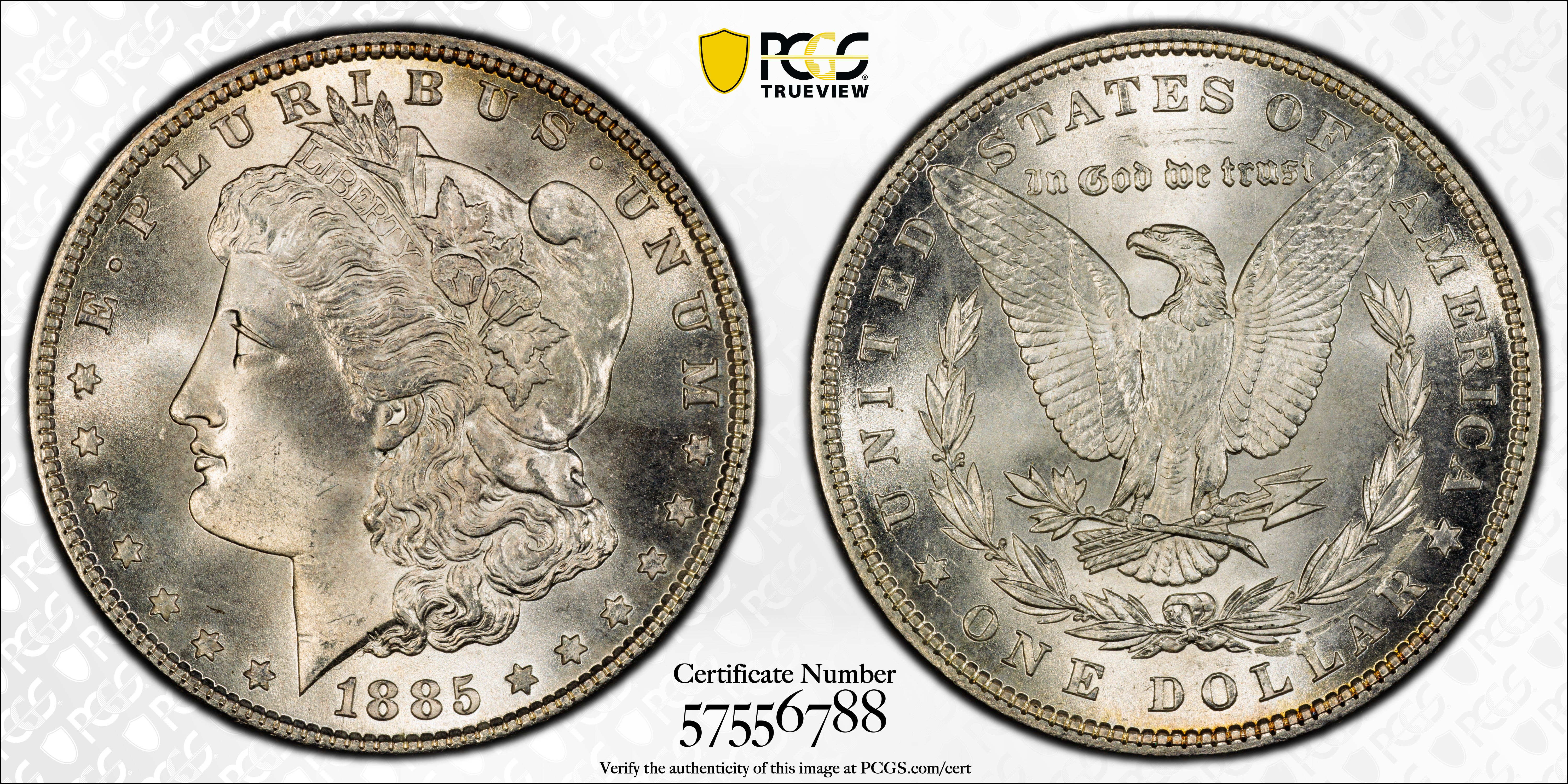 1885 $1 MS67 Certification #57556788, PCGS #7158