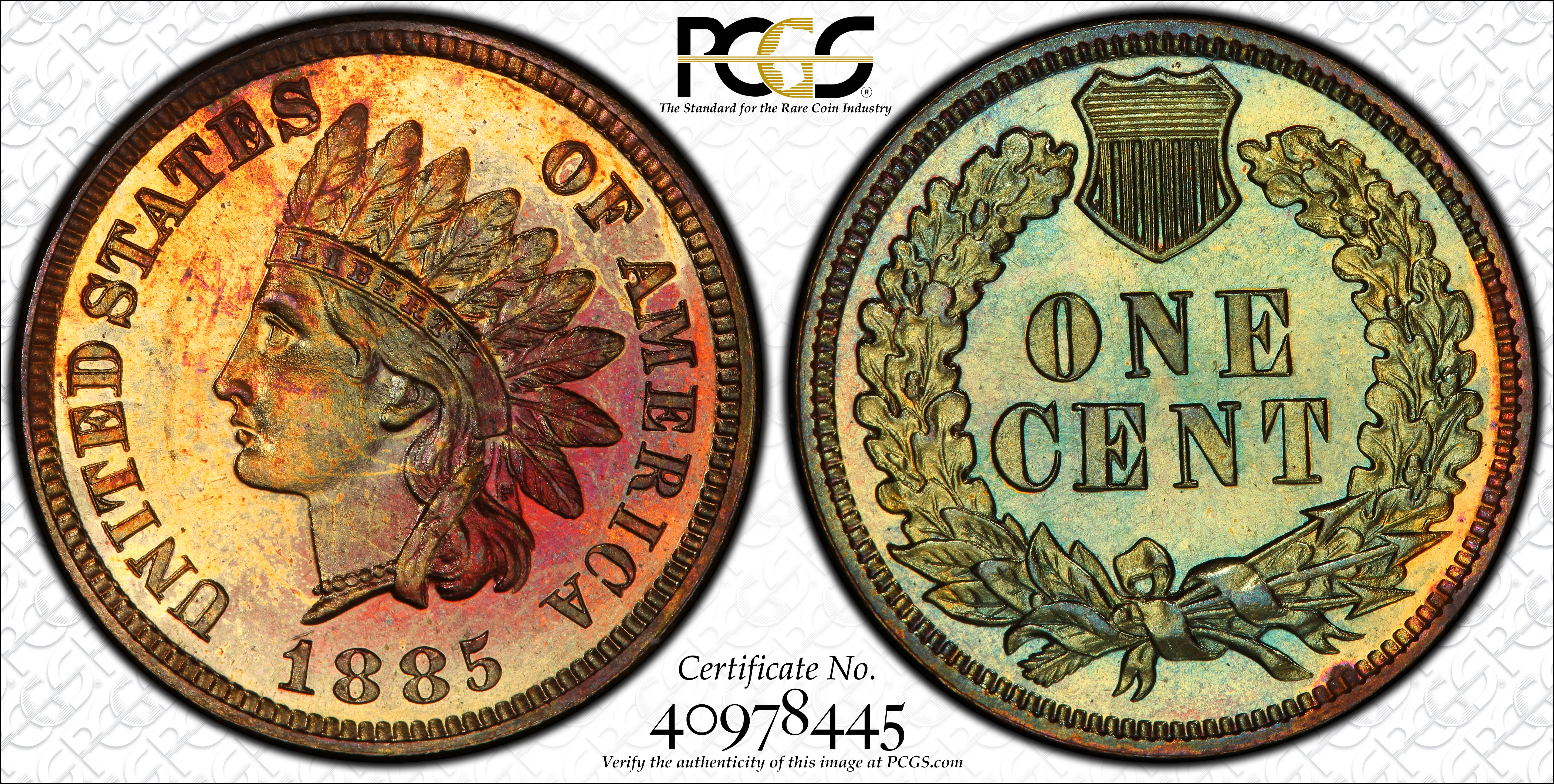 1885 1C, RB PR65RB Certification #40978445, PCGS #2343