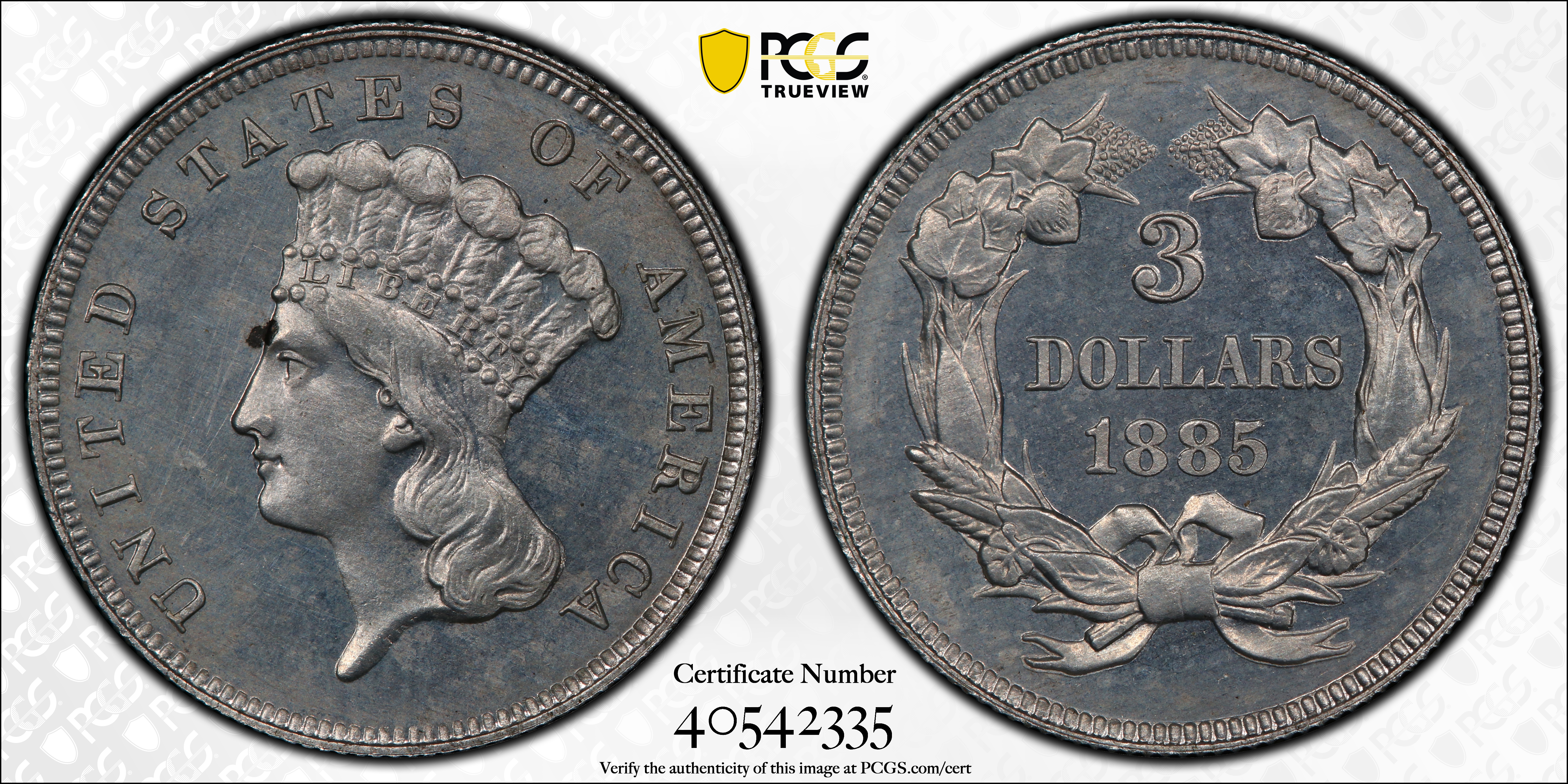 1885 $3 J-1753 PR64 Certification #40542335, PCGS #62196