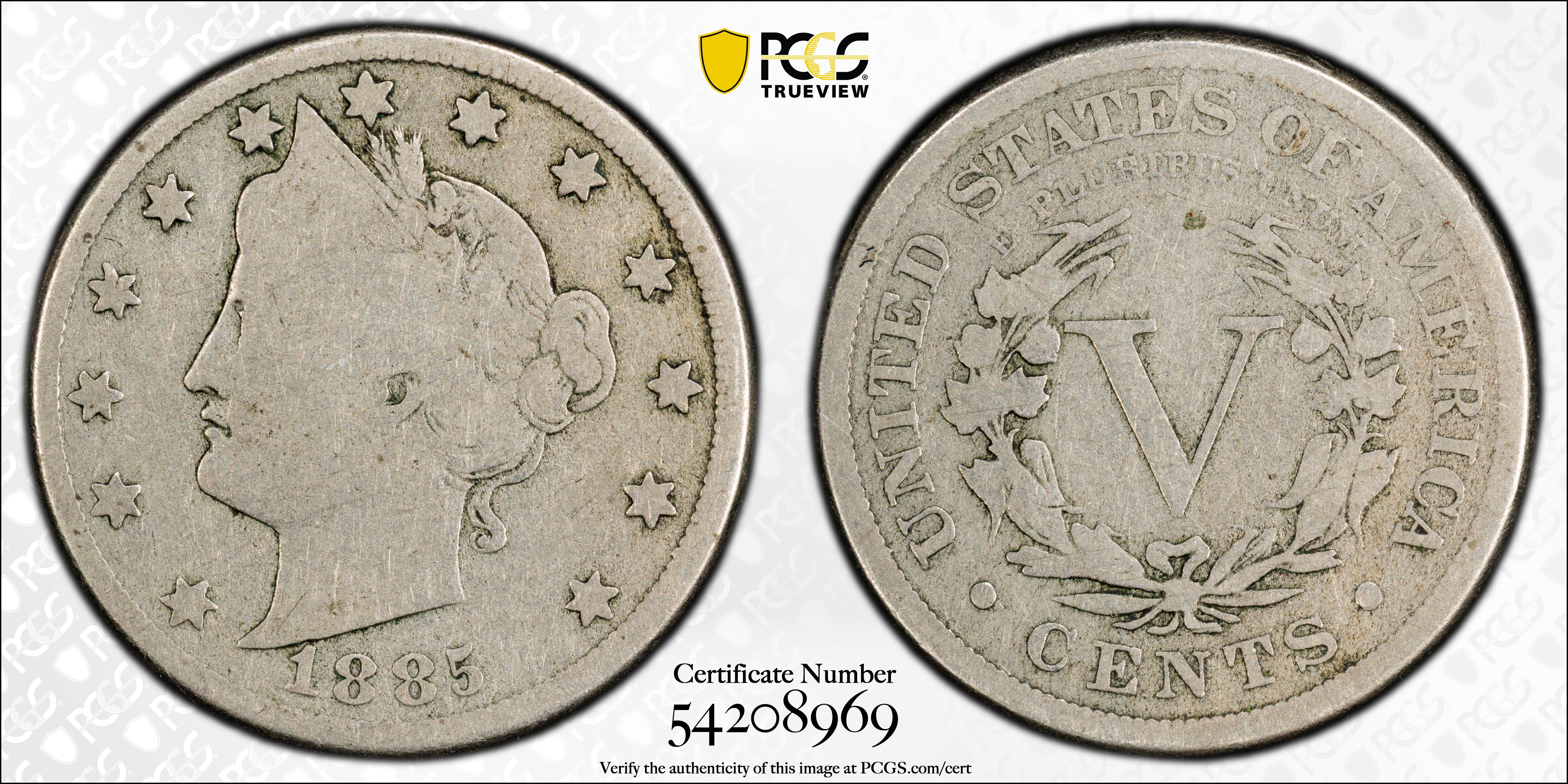 1885 5C G6 Certification #54208969, PCGS #3846