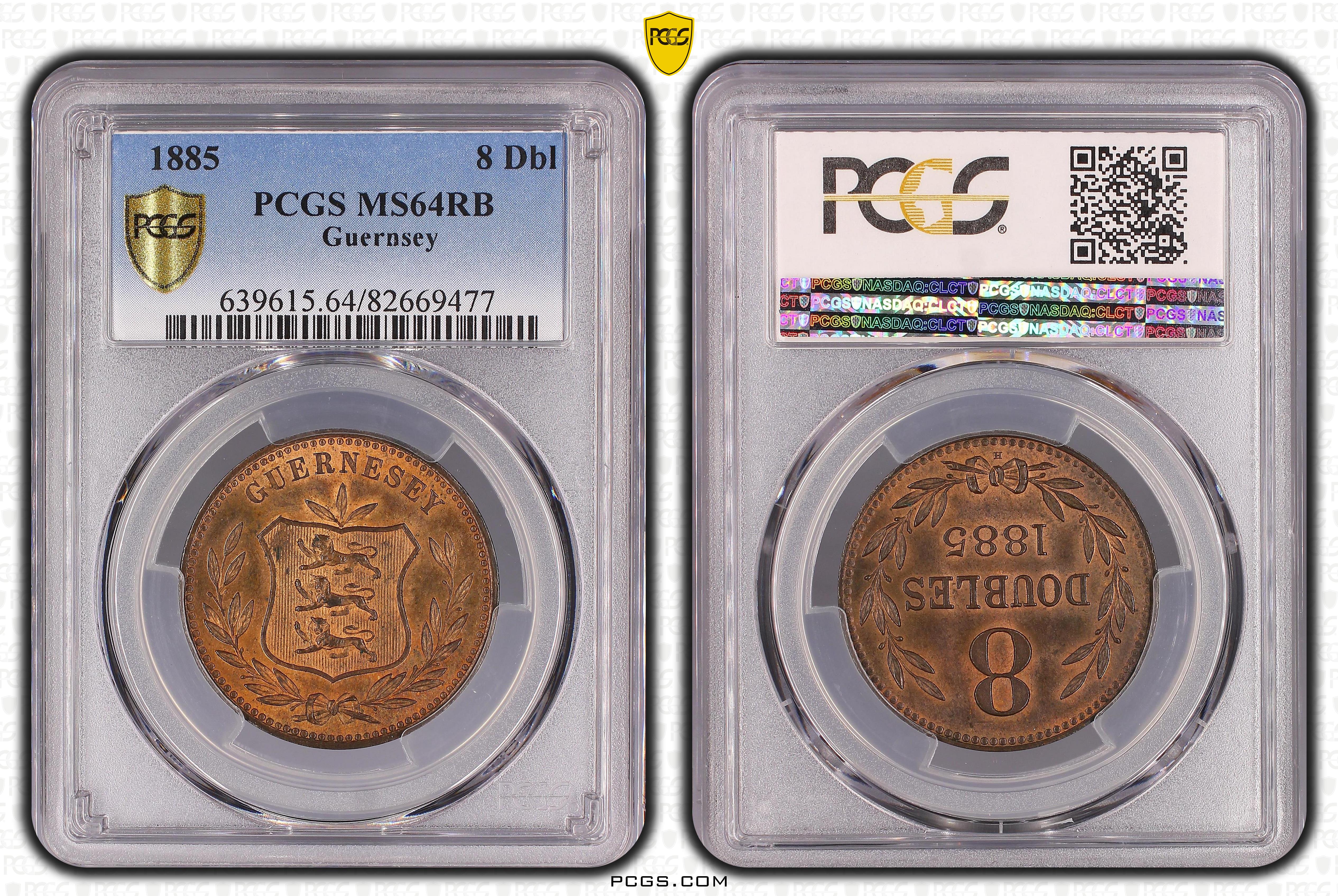 1885 8 Dbl, RB MS64RB Certification #82669477, PCGS #639615