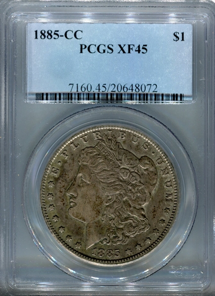 1885-CC $1 XF45 Certification #20648072, PCGS #7160