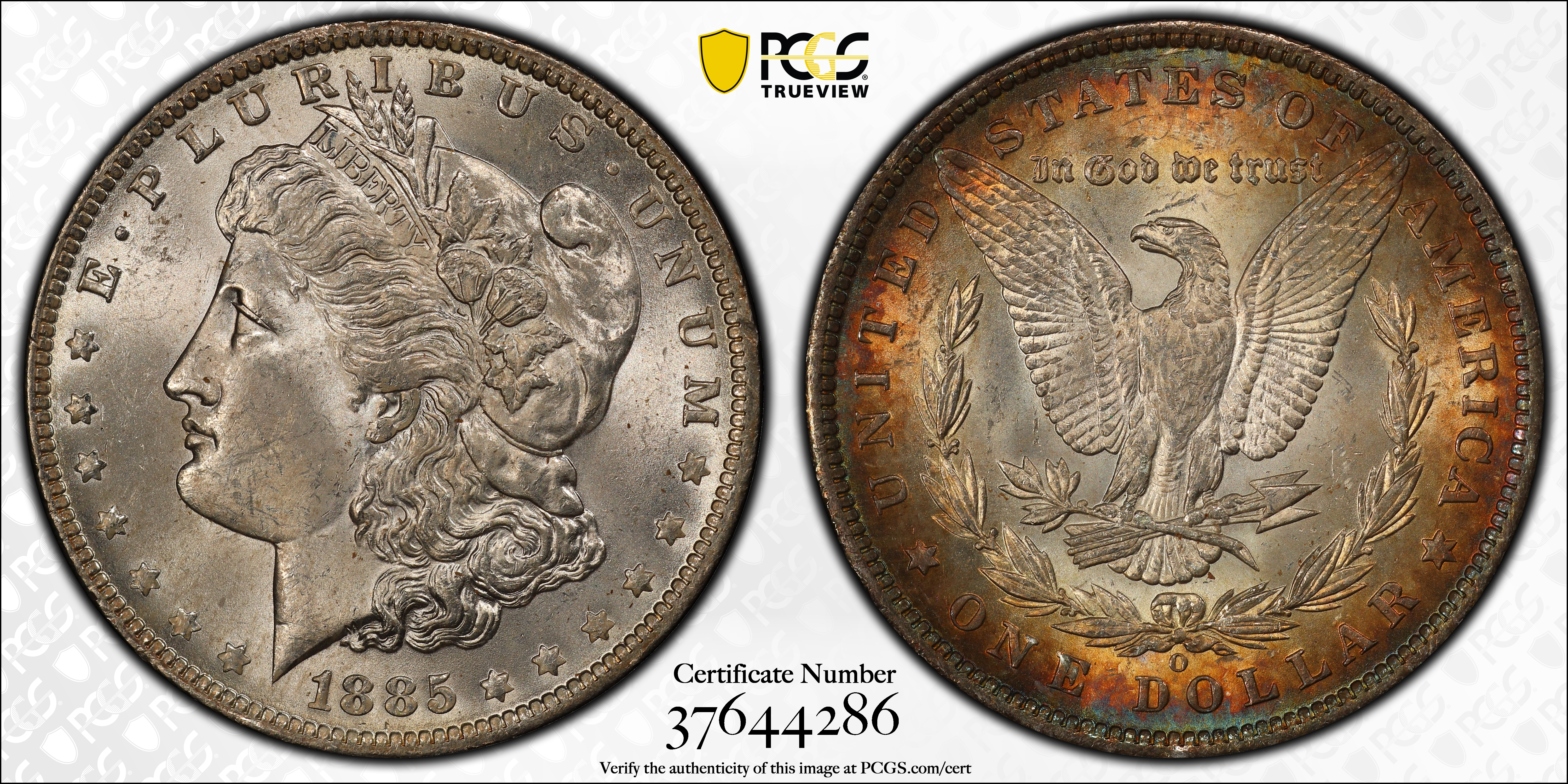 1885-O $1 MS64 Certification #37644286, PCGS #7162