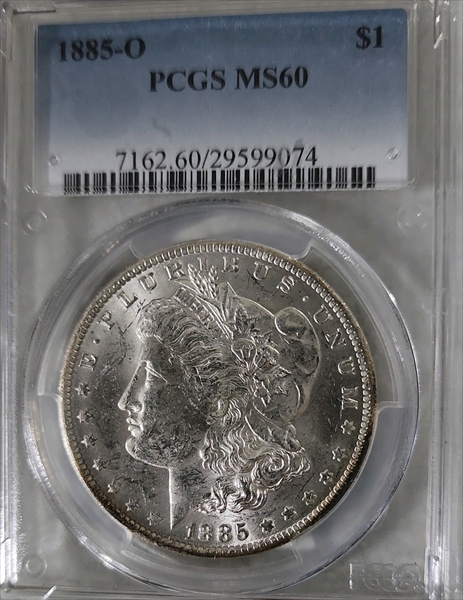 1885-O $1 MS60 Certification #29599074, PCGS #7162