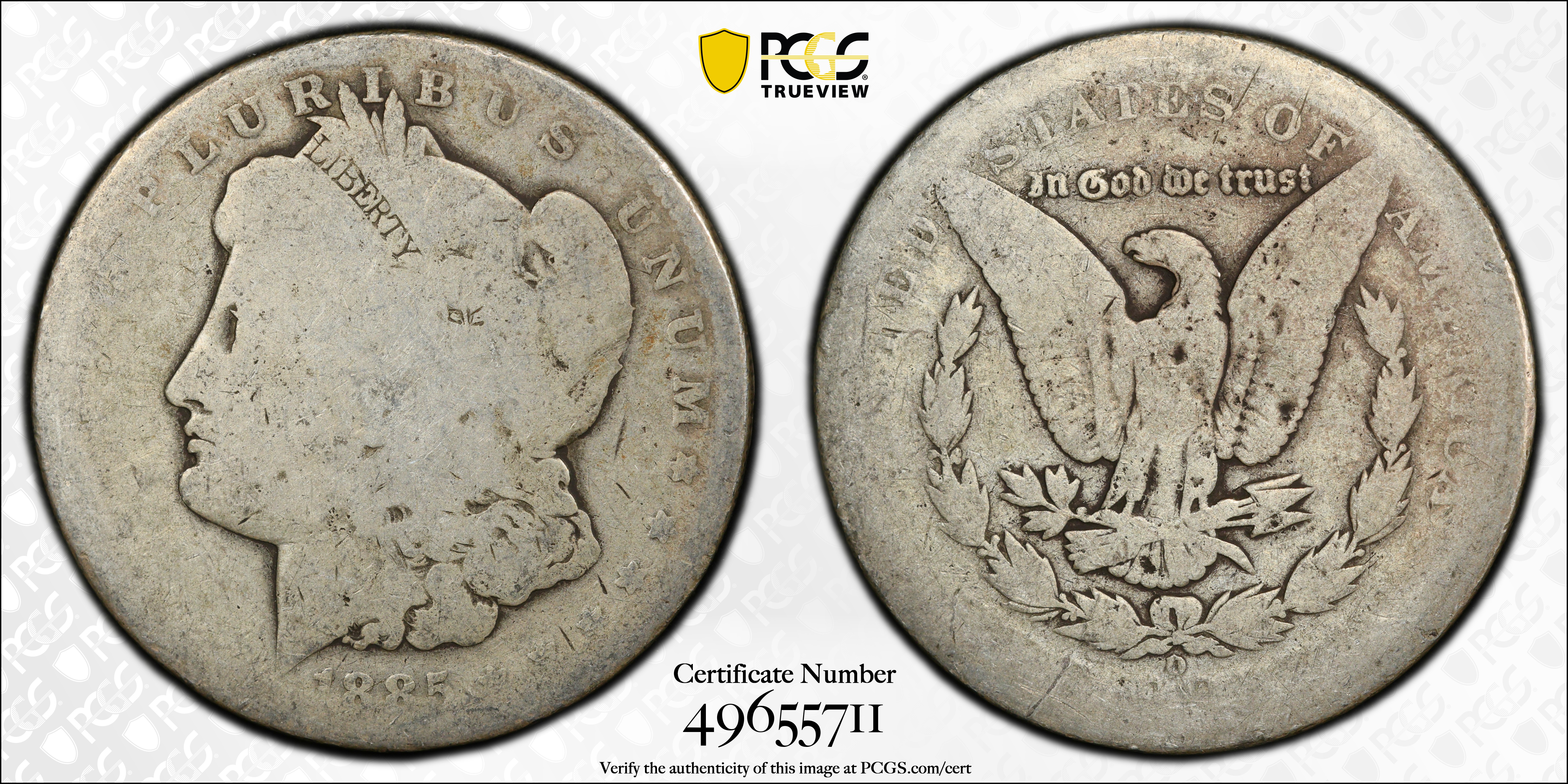 Circulated grades: The 1885-O dollar is very common in Worn grades and attracts scant numismatic notice, due to the easy availability of Mint State coins.