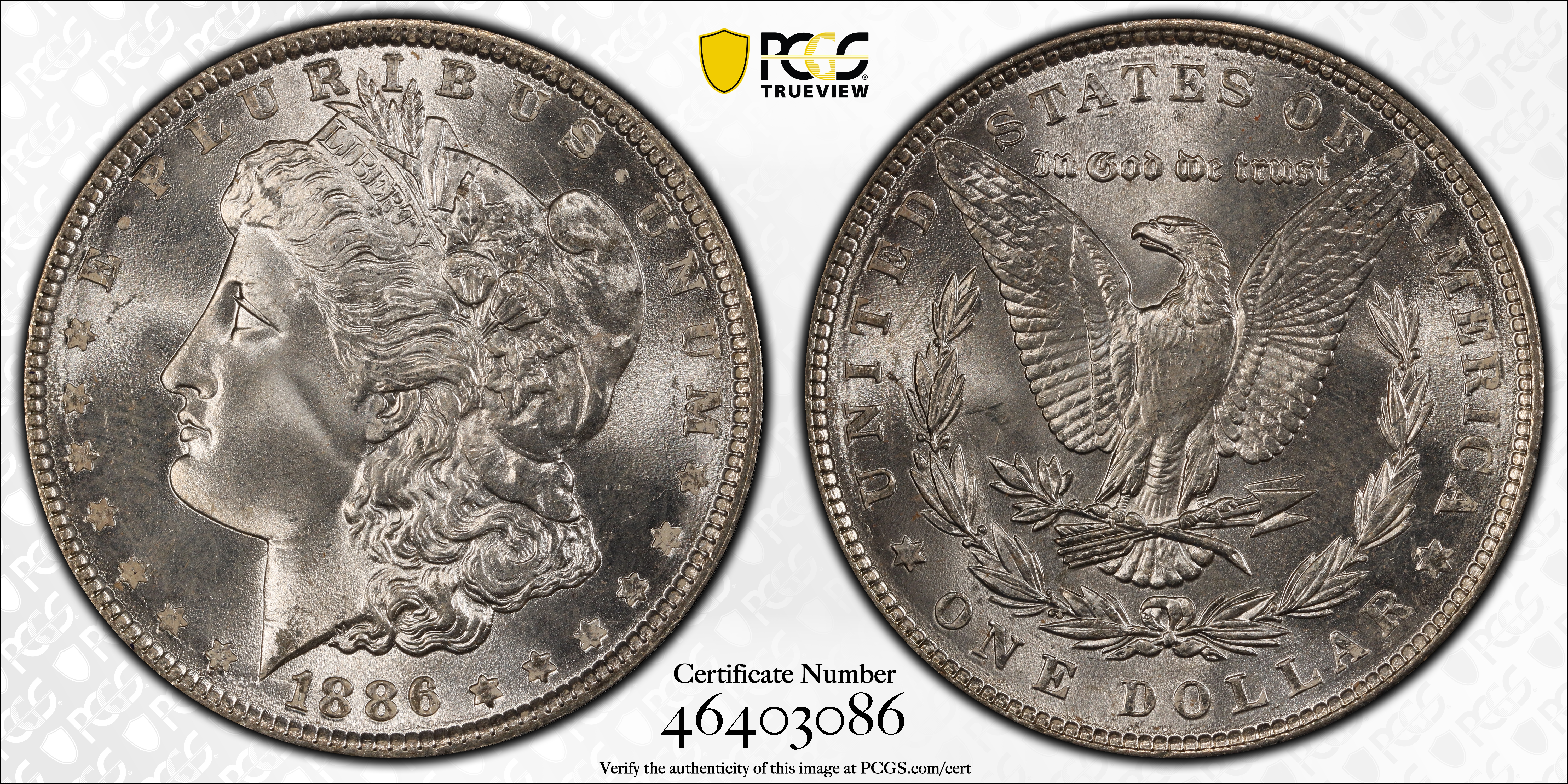 1886 $1 MS67 Certification #46403086, PCGS #7166