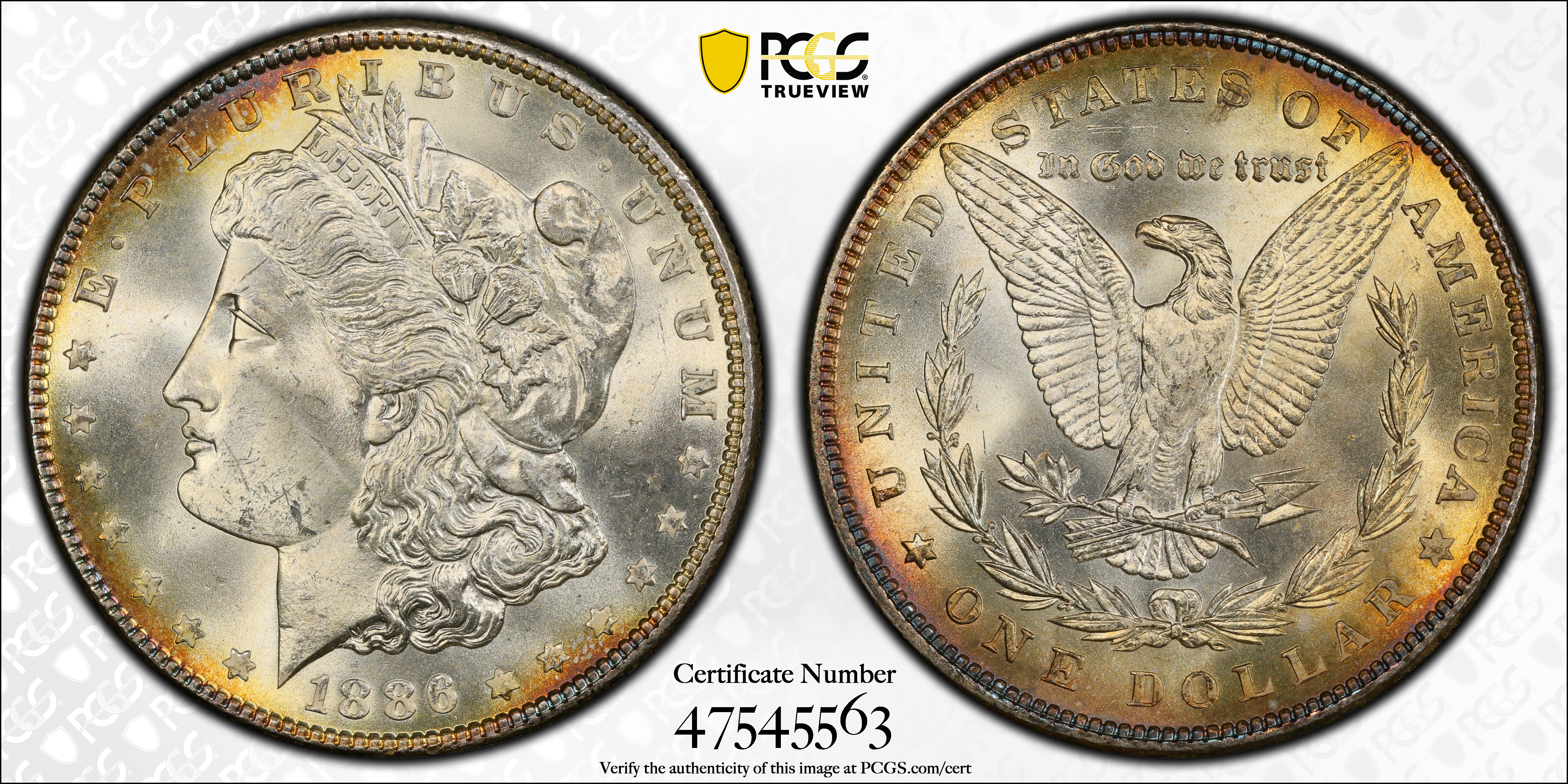1886 $1 MS65 Certification #47545563, PCGS #7166