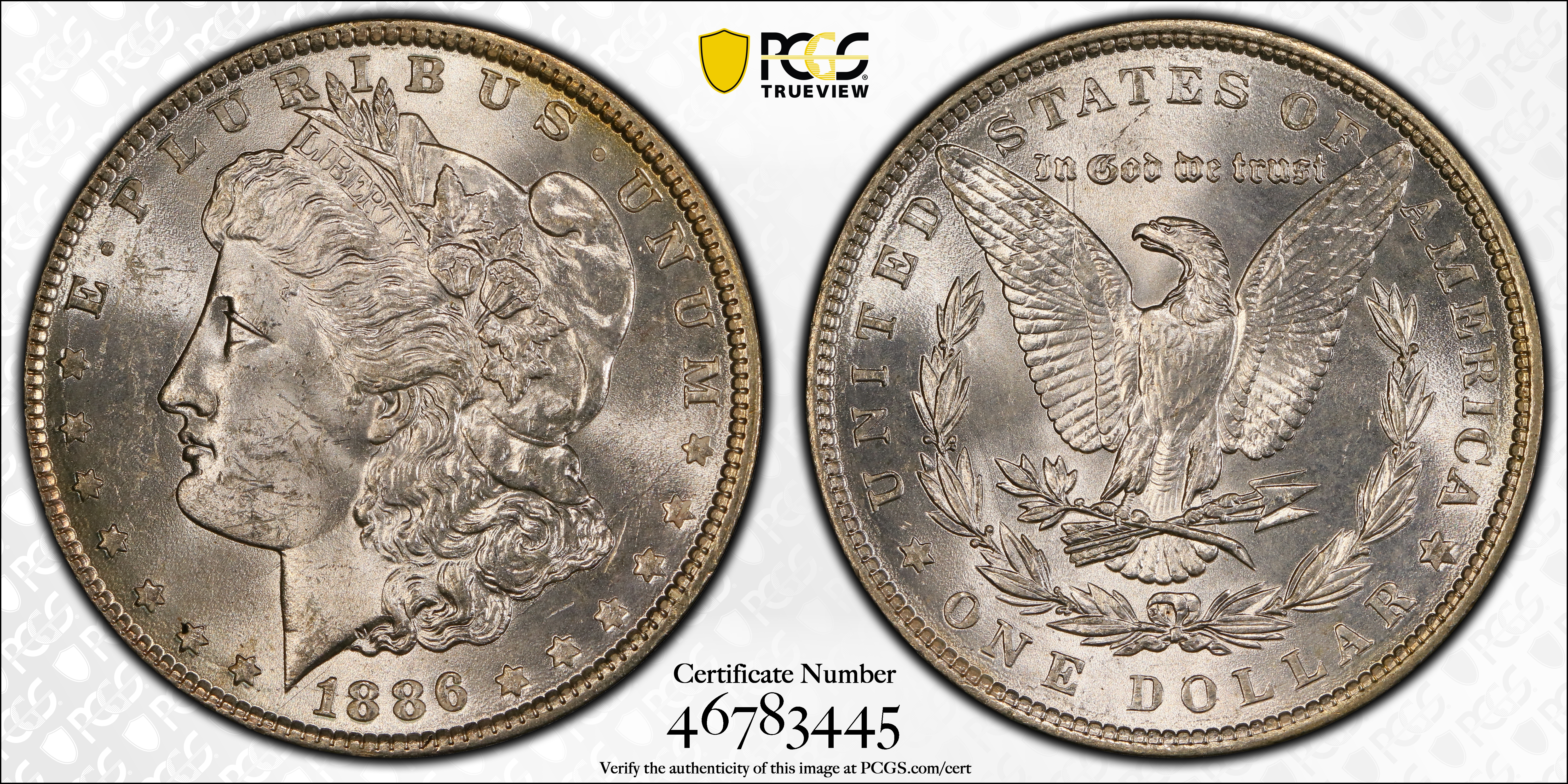 1886 $1 MS63 Certification #46783445, PCGS #7166