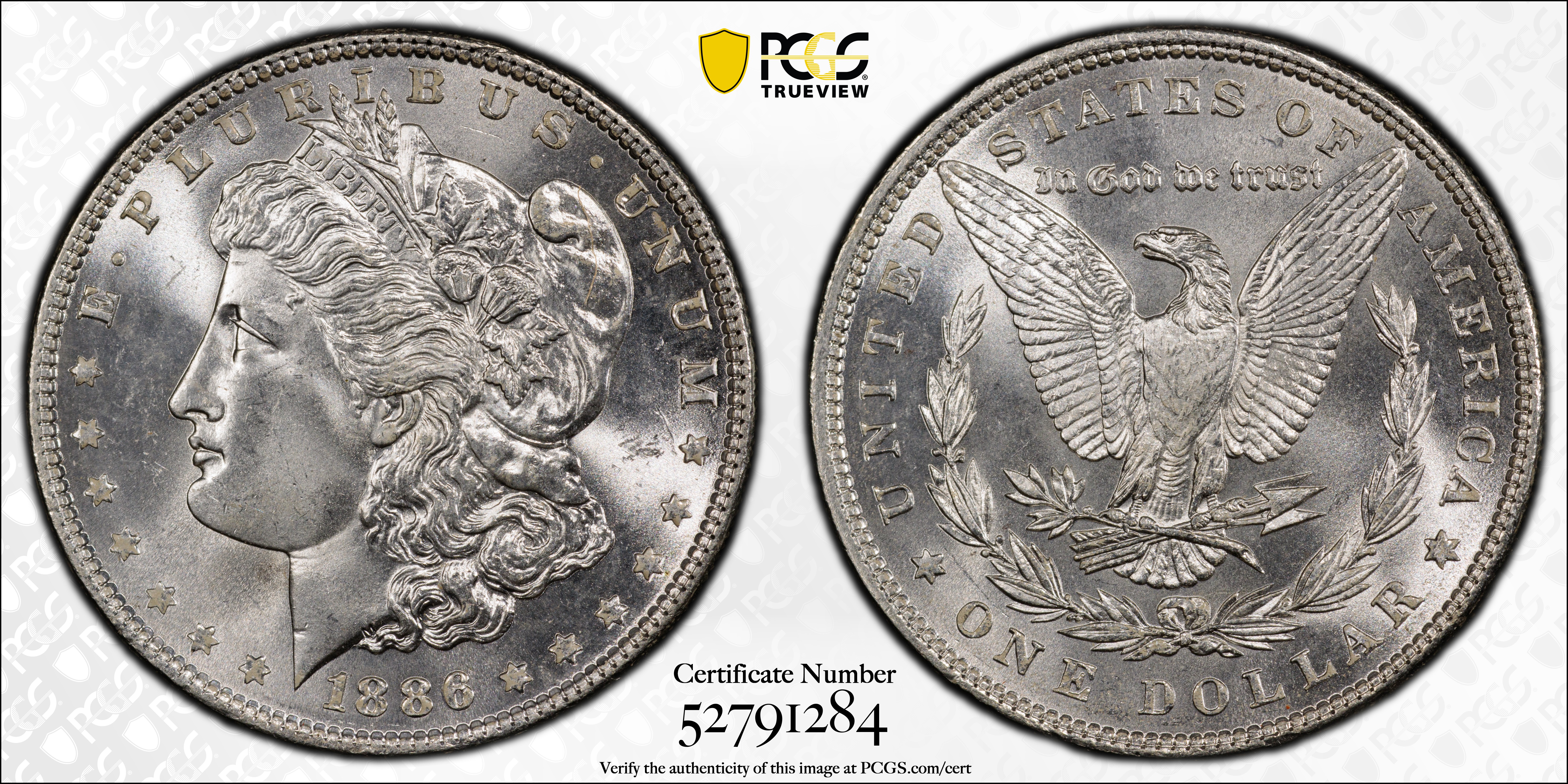 1886 $1 MS65 Certification #52791284, PCGS #7166