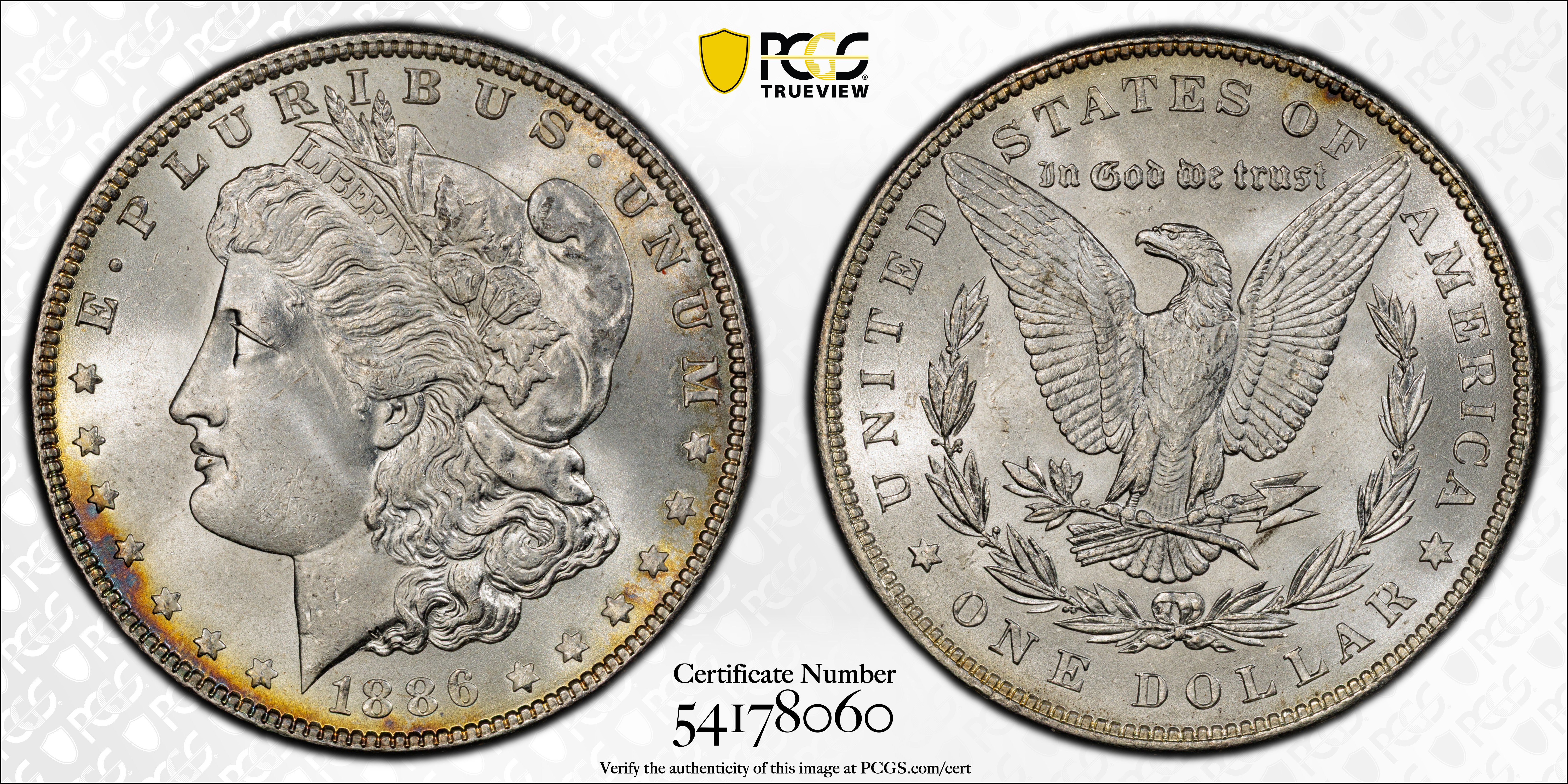 1886 $1 MS64 Certification #54178060, PCGS #7166