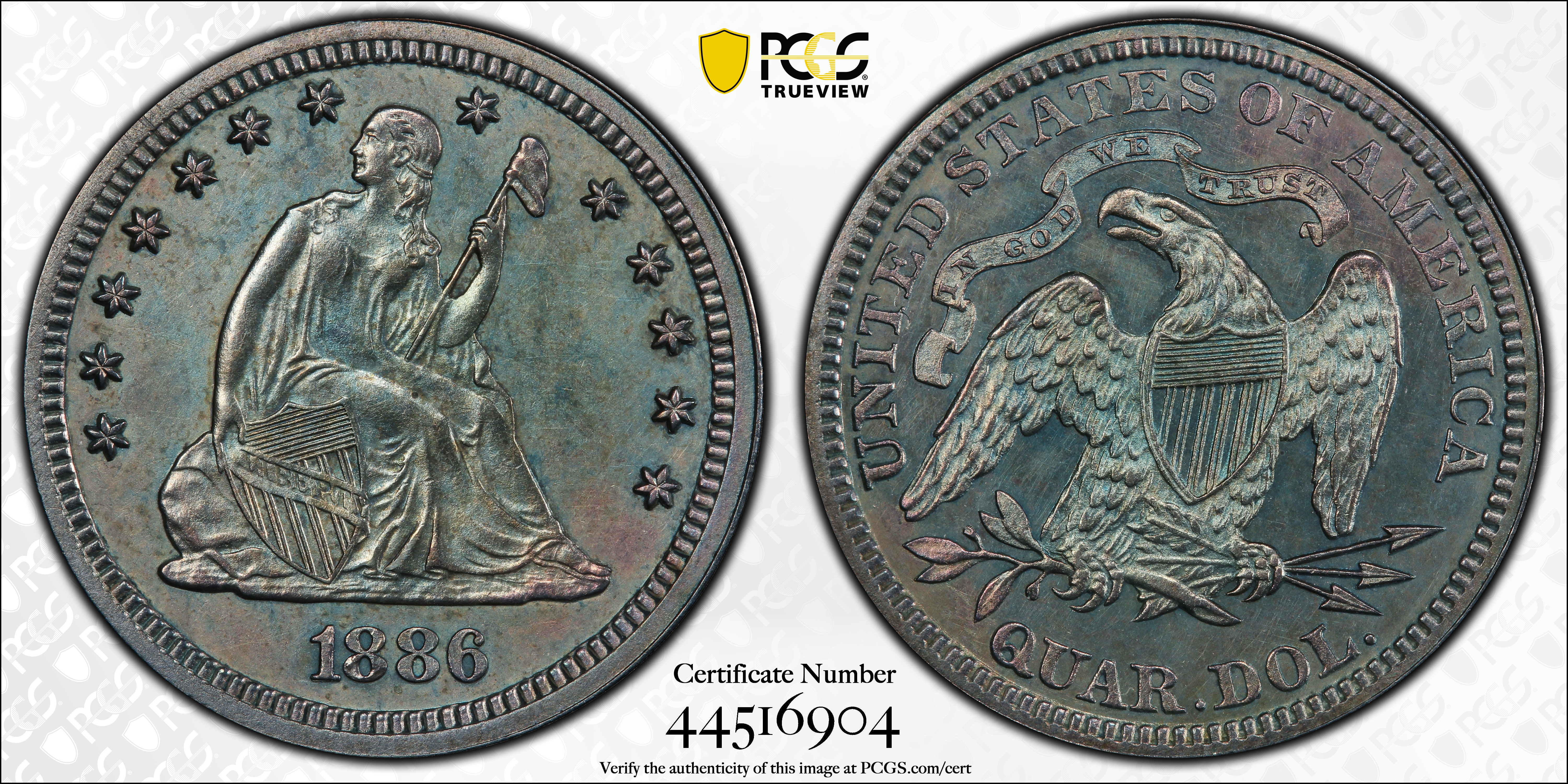 1886 25C PR1 Certification #44516904, PCGS #5587