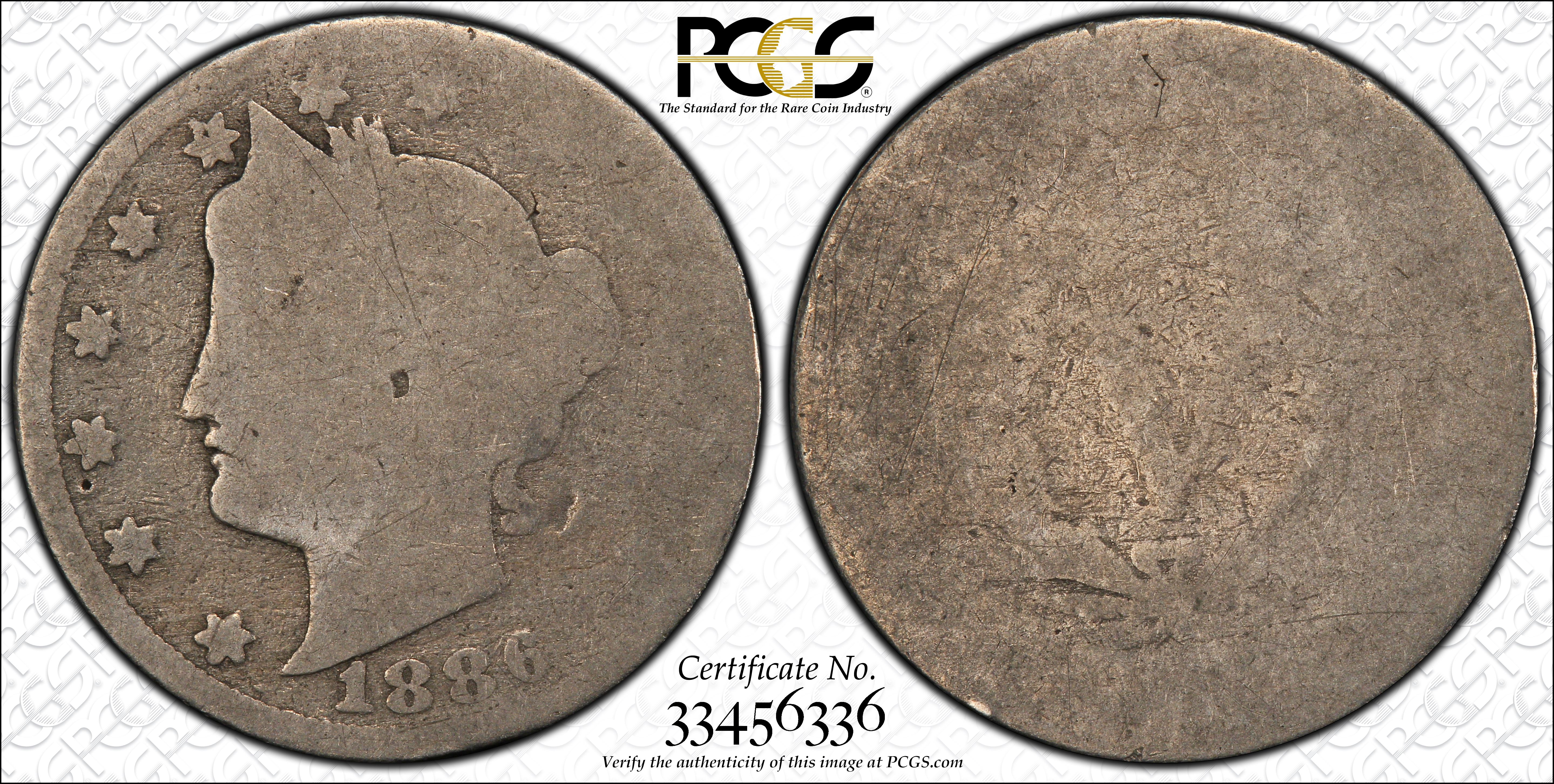 1886 5C FR2 Certification #33456336, PCGS #3847