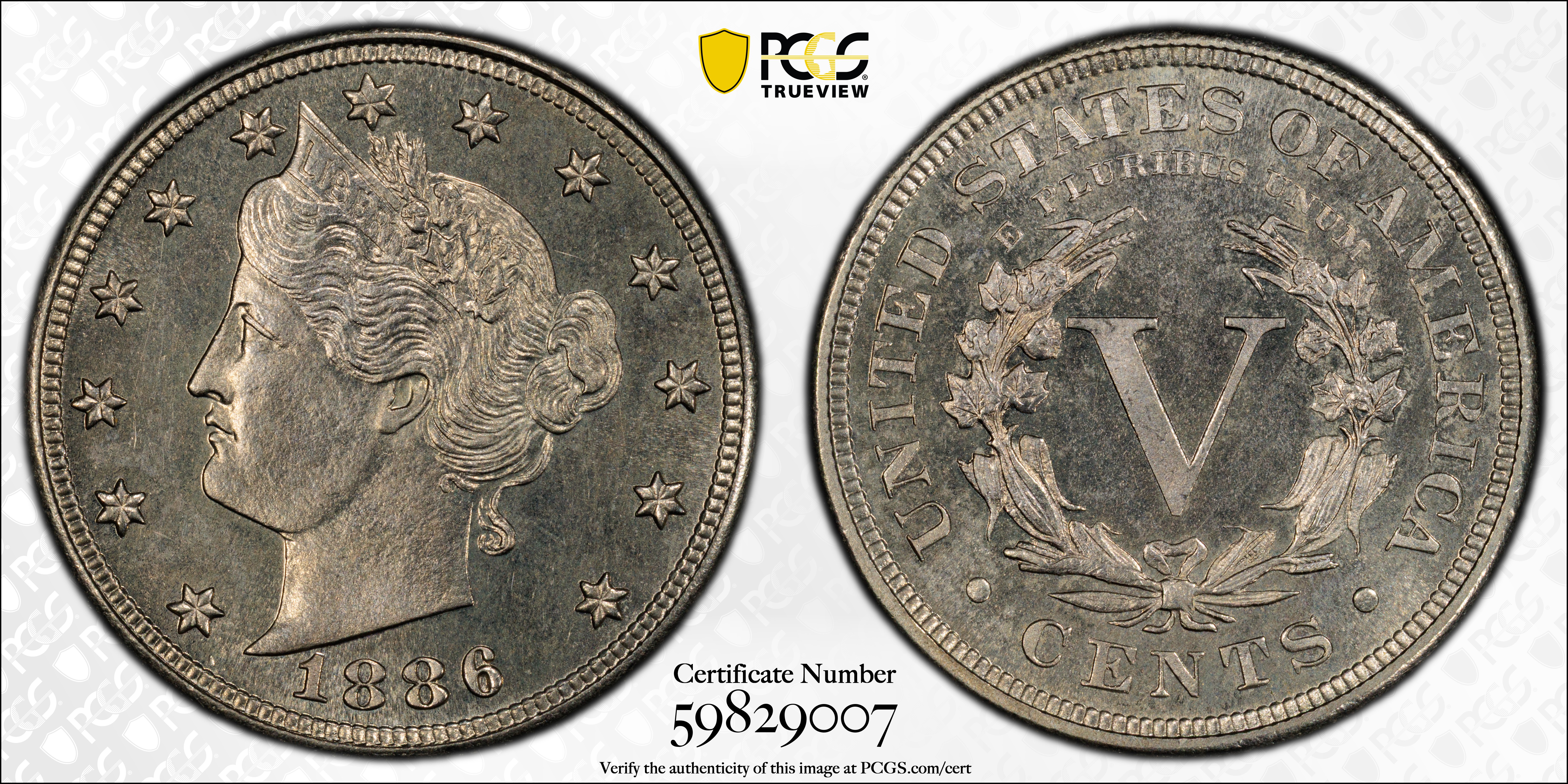 1886 5C PR64 Certification #59829007, PCGS #3884