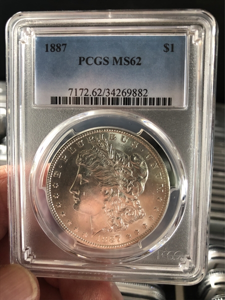 Circulated grades: Worn 1887 dollars are plentiful, and because Mint State coins are so common, circulated pieces are not of much interest to numismatists. However, they make interesting presents to children.