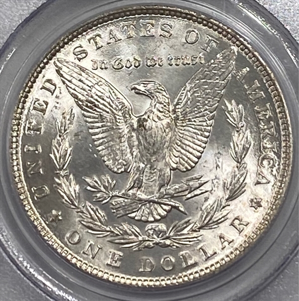 Mint State grades: It is probably redundant at this point to state that the 1887 is very common in Mint State. Most coins are average strikes, but individual specimens may vary either way, from quite flat to quite sharp. Cherrypicking for quality is advised and is not hard to accomplish. The lustre is apt to be a bit satiny or "greasy," on the dull side, rather than deeply lustrous and frosty. Perhaps some now unemployed coiner from the Carson City Mint, which produced superb quality coins, should have visited Philadelphia to show them how to do things right. In actuality, few if any people at the Philadelphia Mint cared about the quality of silver dollars. They were being produced to conform with a piece of legislation promoted by distant western interests, the 1878 Bland-Allison Act, and most pieces were destined to be sewn into mint bags and dumped into dark storage.