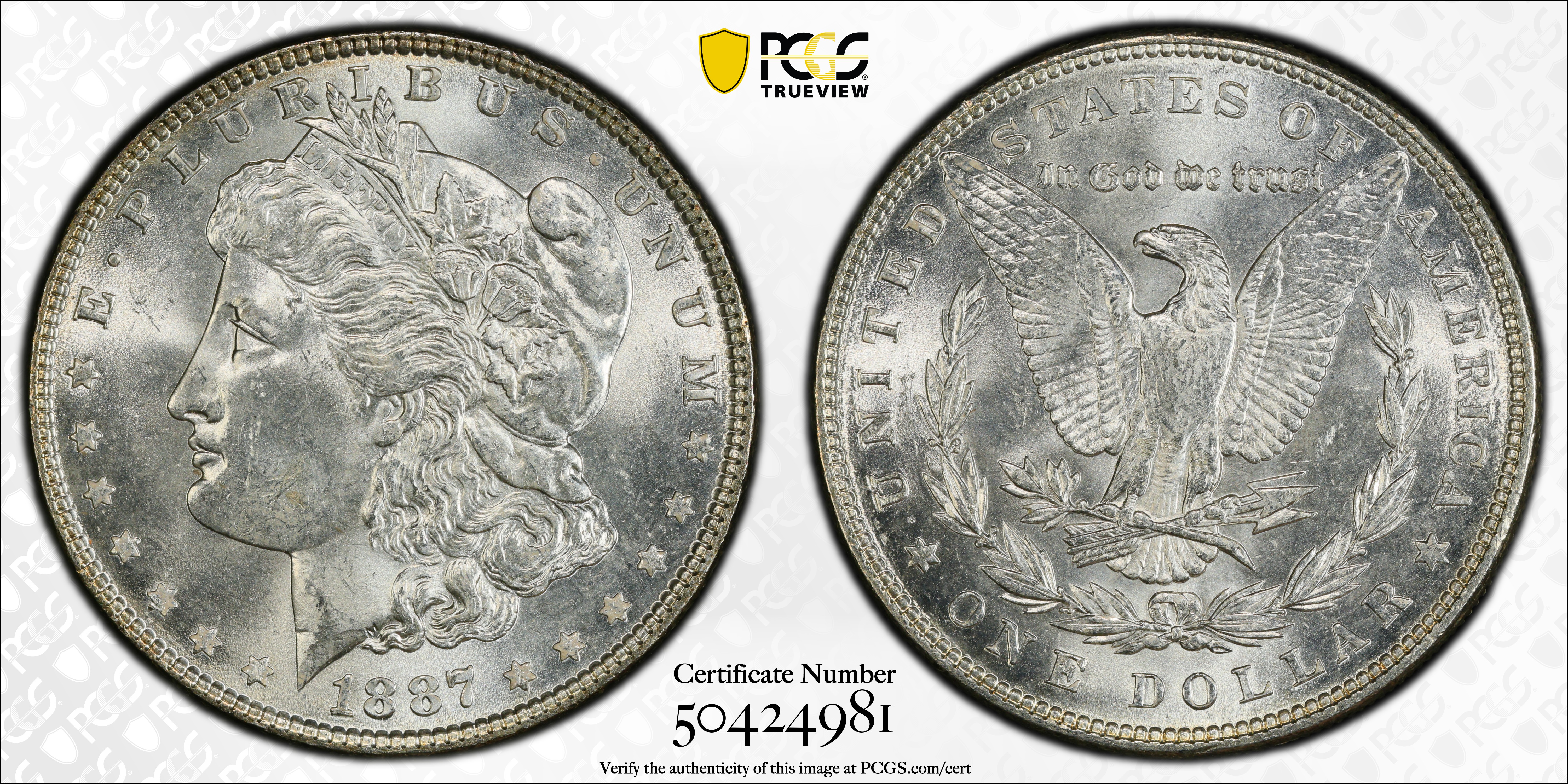 1887 $1 MS63 Certification #50424981, PCGS #7172