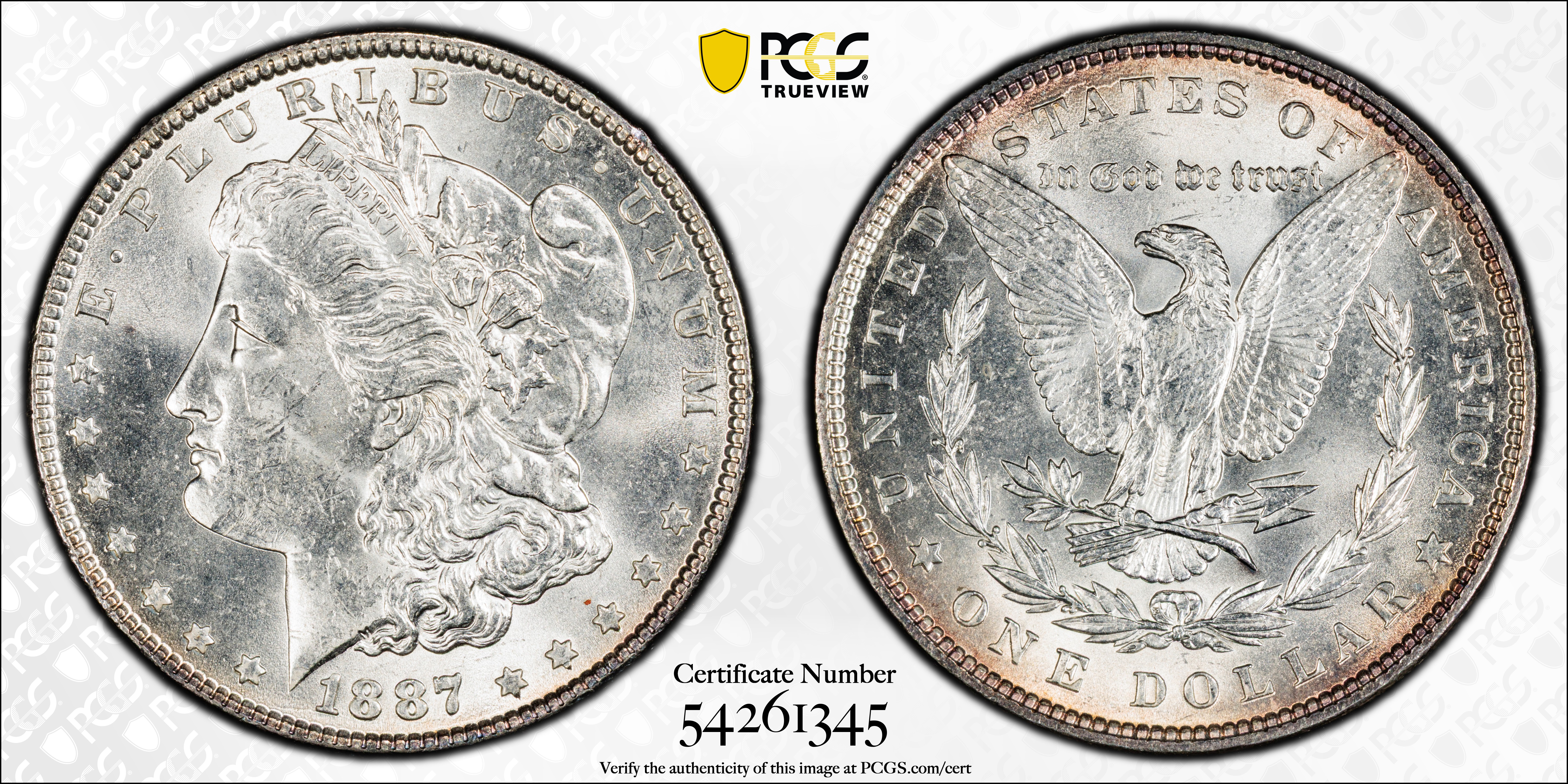 1887 $1 MS63 Certification #54261345, PCGS #7172