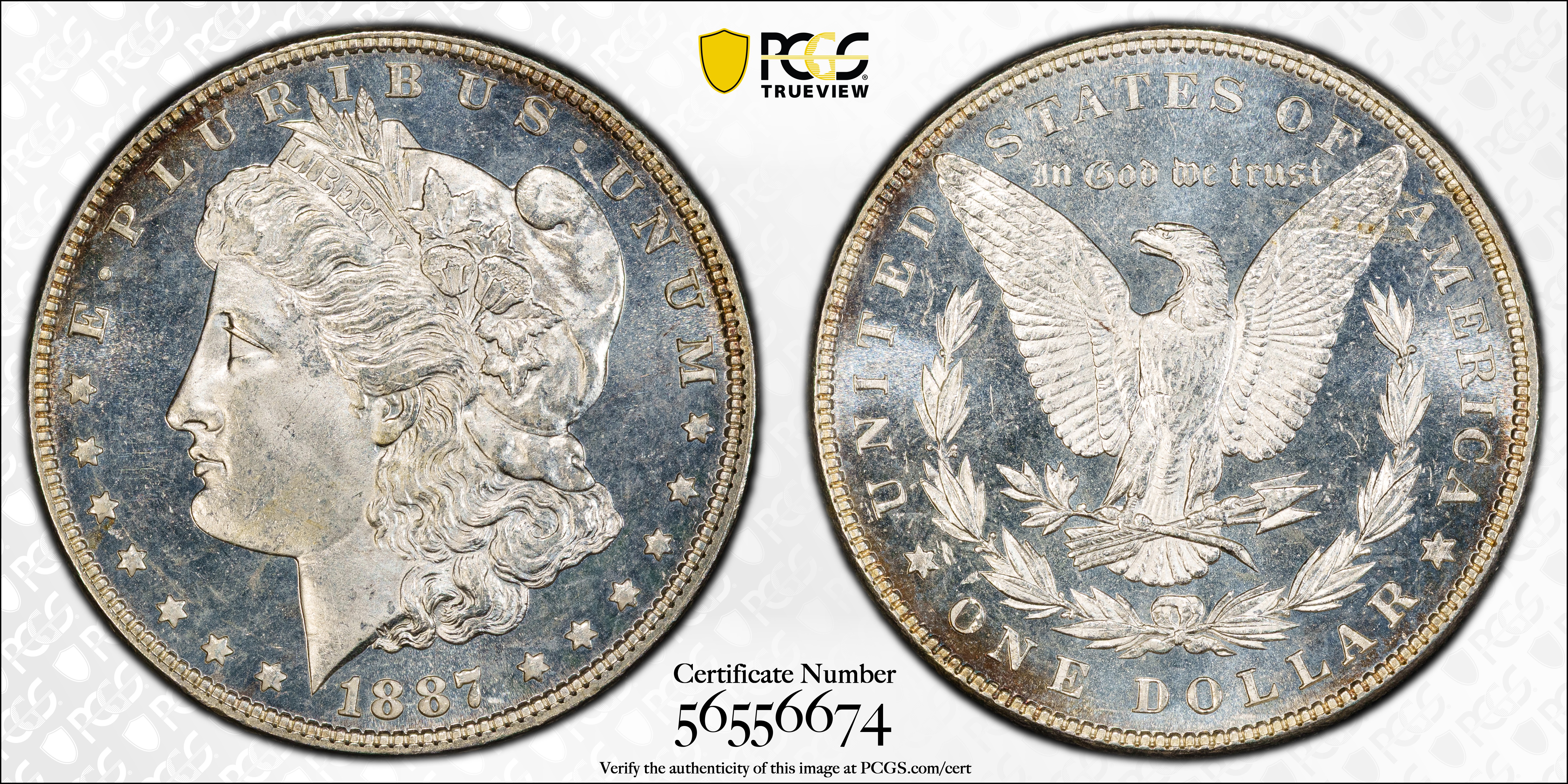 1887 $1, DMPL MS67DMPL Certification #56556674, PCGS #97173